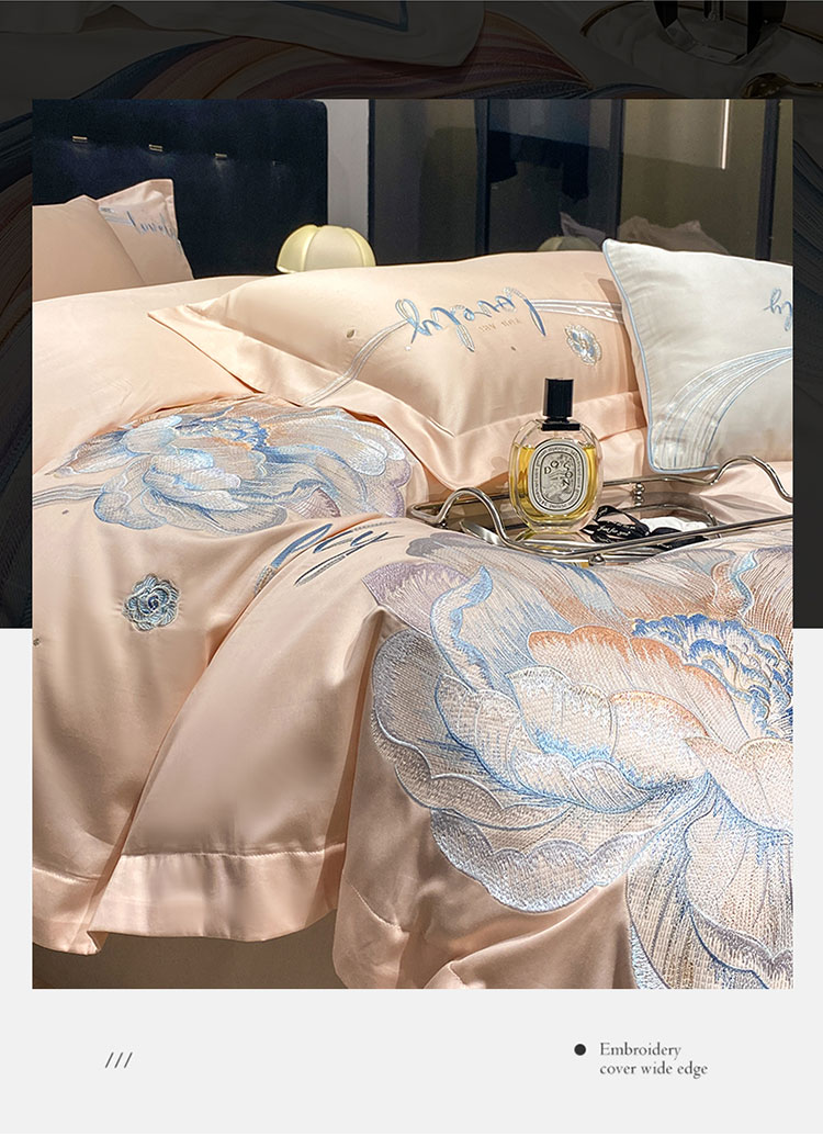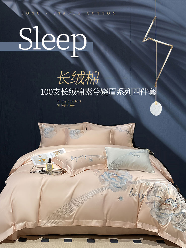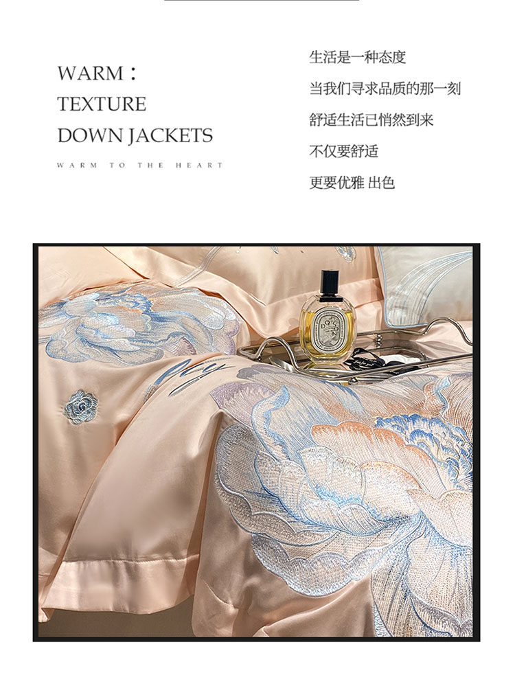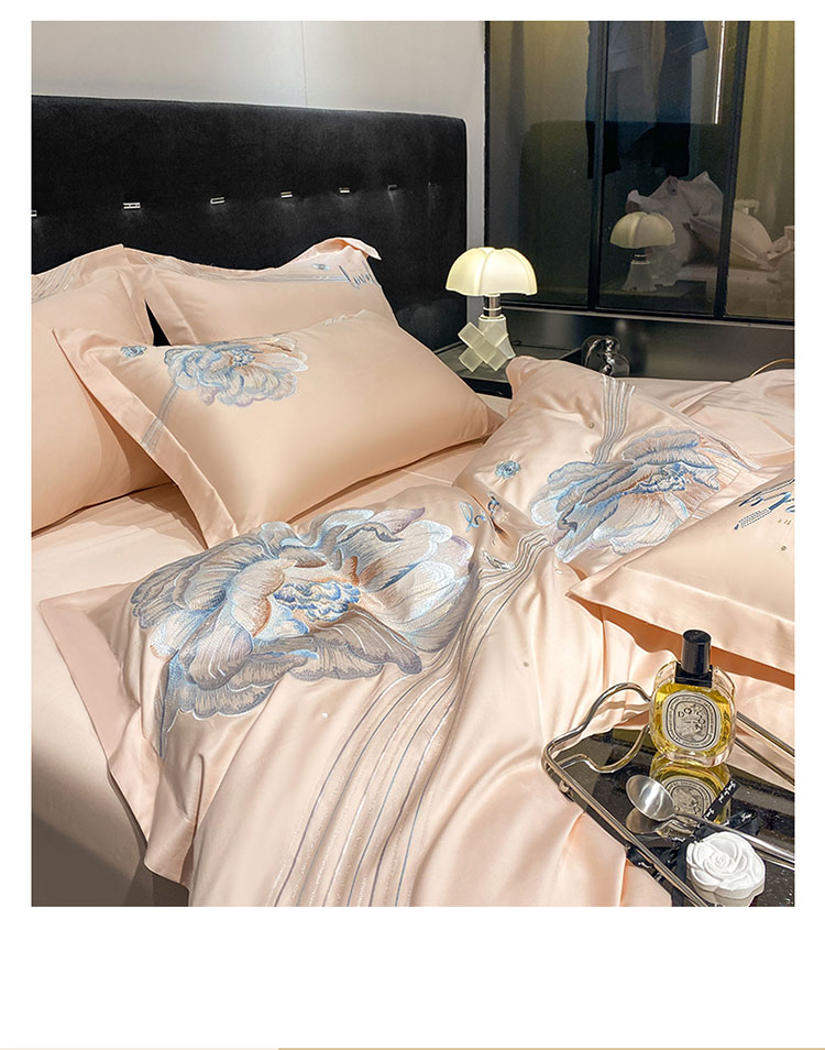 魅都 100阿克苏长绒棉刺绣四件套-素兮娆眉 素兮娆眉-粉玉