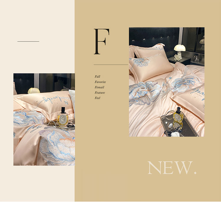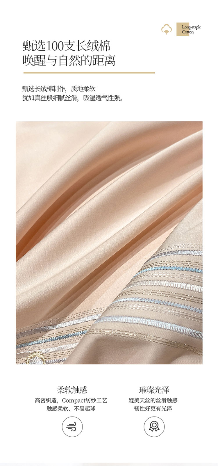 (总)魅都 2025新款100s长绒棉简约织带轻奢风四件套-罗伊,爱马橙,亮粉,浅灰,香槟金,香芋紫
