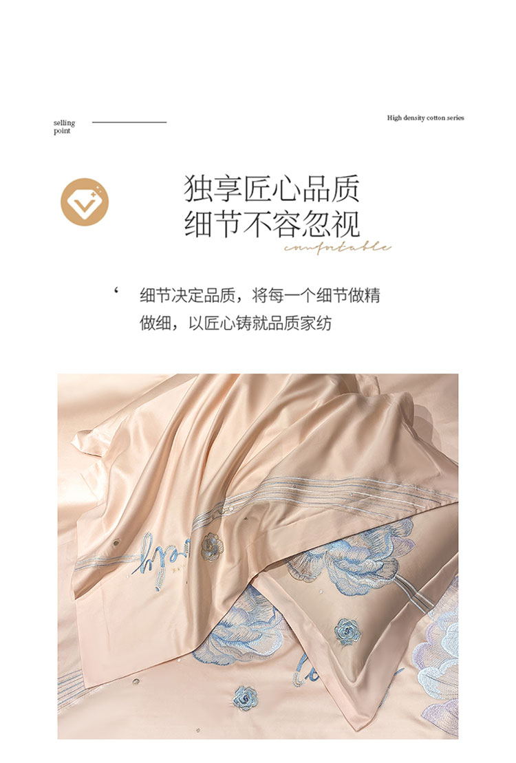 商品名称:魅都 100阿克苏长绒棉刺绣四件套-素兮娆眉 素兮娆眉-粉玉
