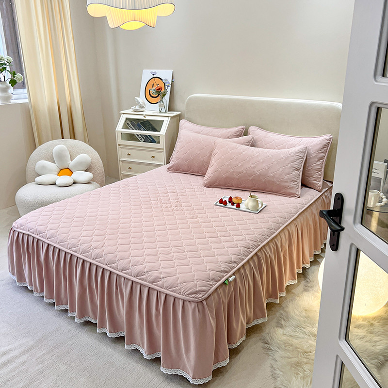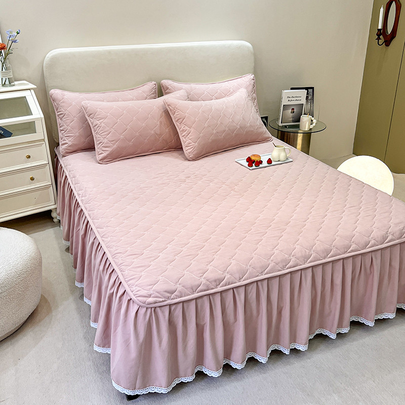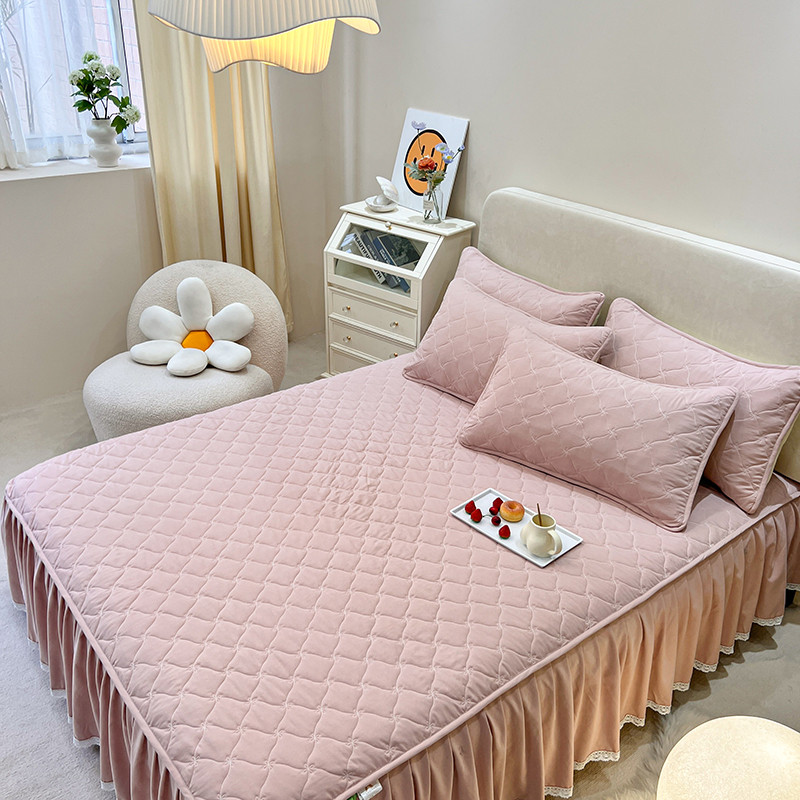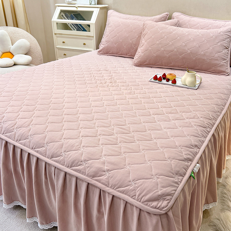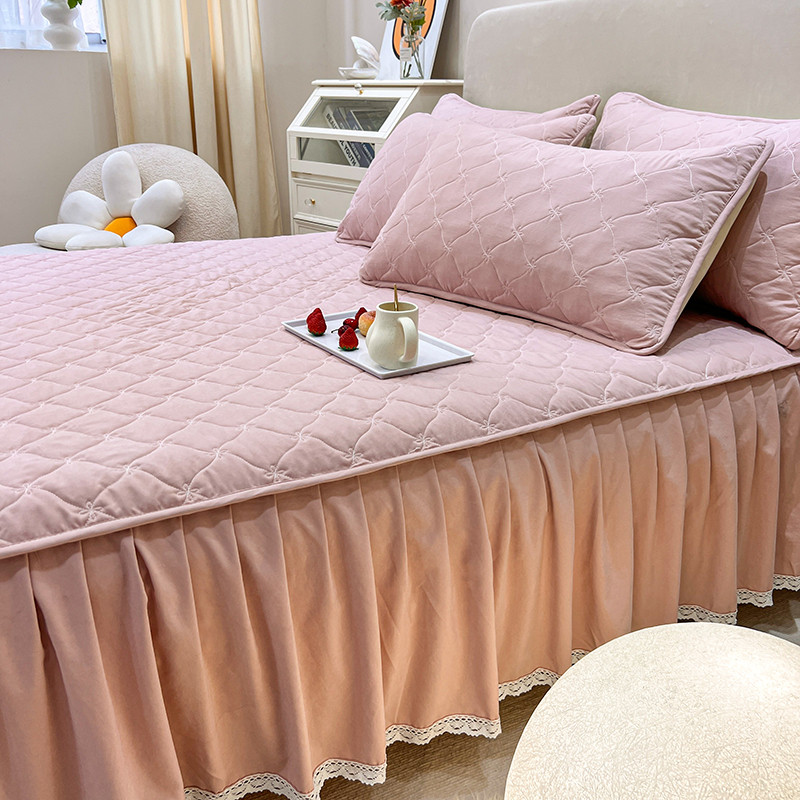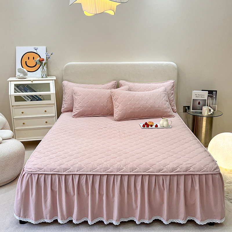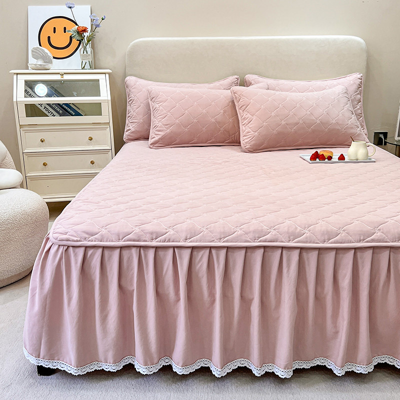 商品名称:格真 2023新款A类云锦棉大豆棉床裙 樱花粉