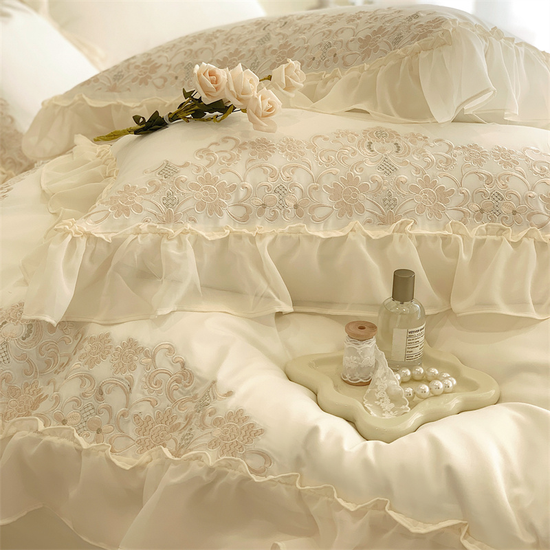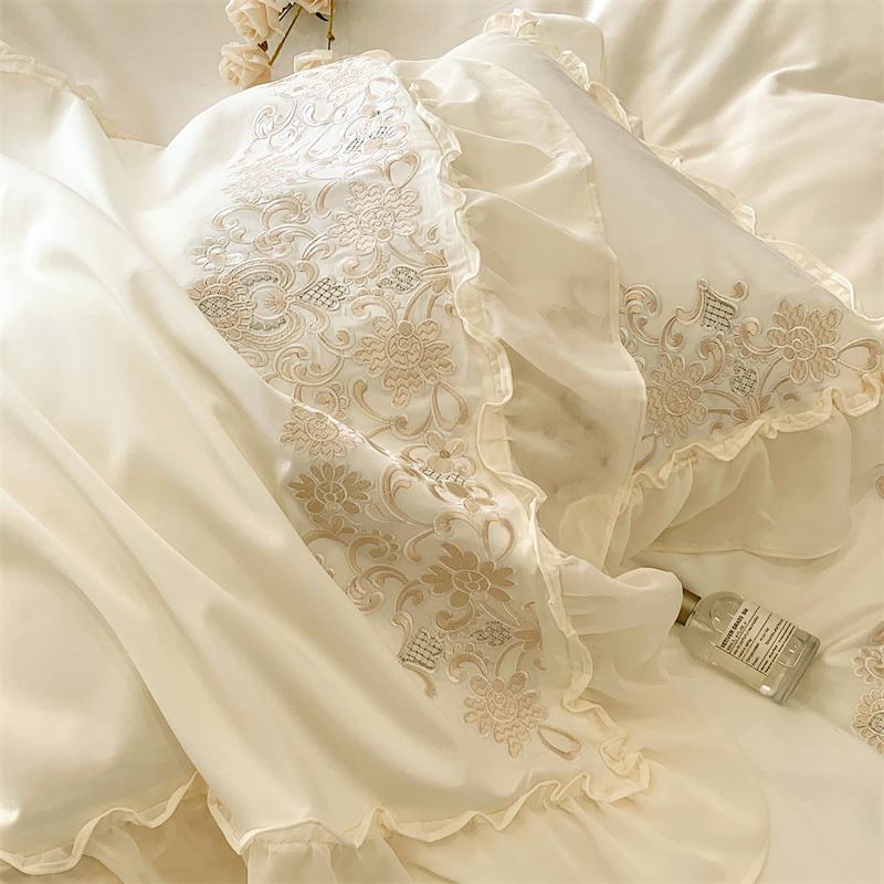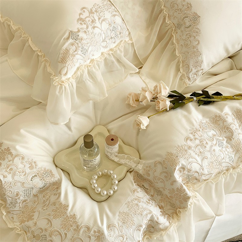 商品名称:馨蕊 2023春夏新品轻奢风100支高定系列四件套 温莎夫人-月光白