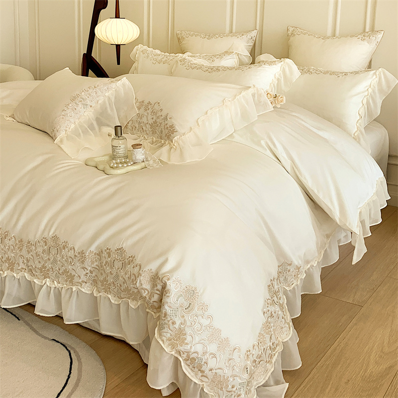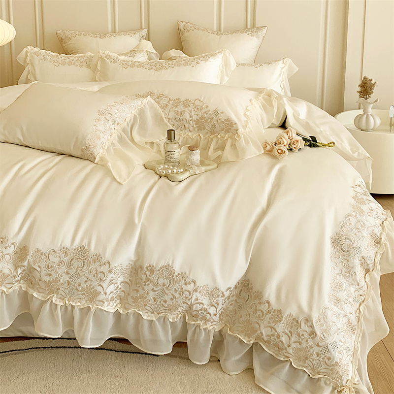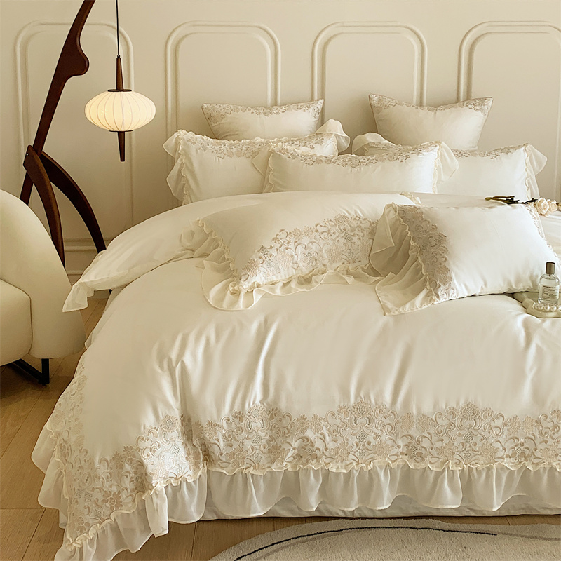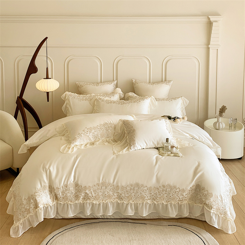 馨蕊 2023春夏新品轻奢风100支高定系列四件套 温莎夫人-月光白