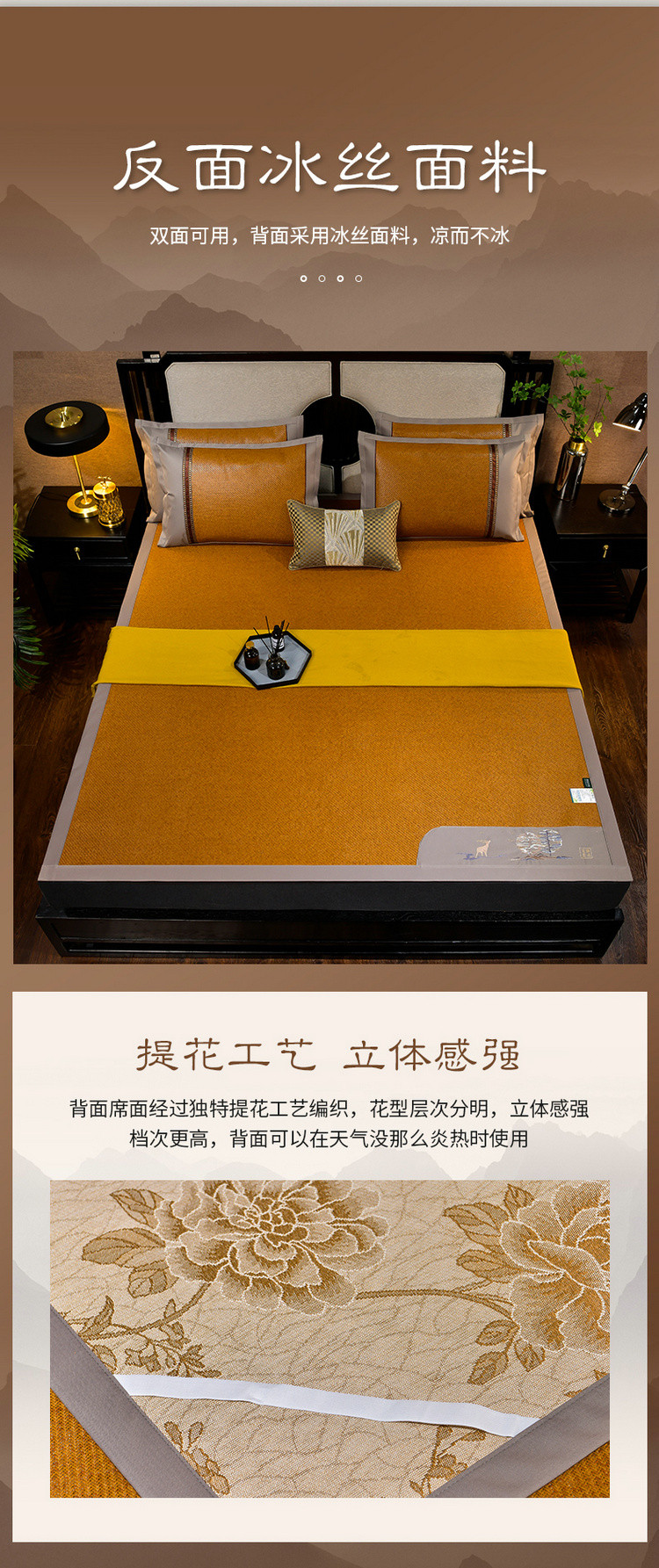 商品名称:小牛席业 2023新款丛林小鹿绣花清凉席 红棕