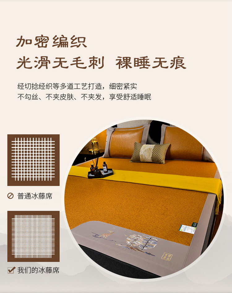 2023新款夏日冰点-冰藤双面席凉席藤席竹席冰丝席乳胶席,咖色,蓝色,绿色,香槟