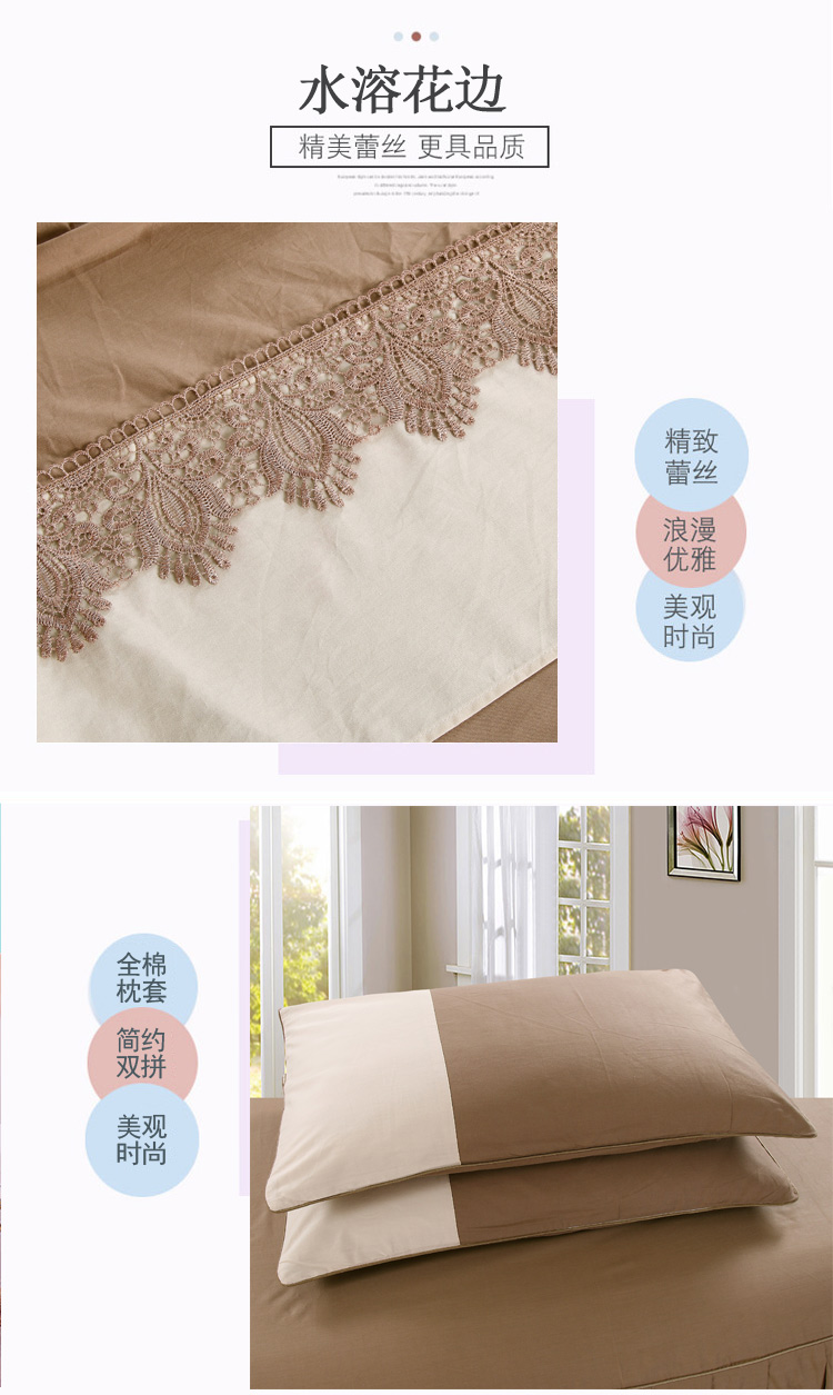 琉宿家纺 2023新款13372全棉双拼床裙 咖