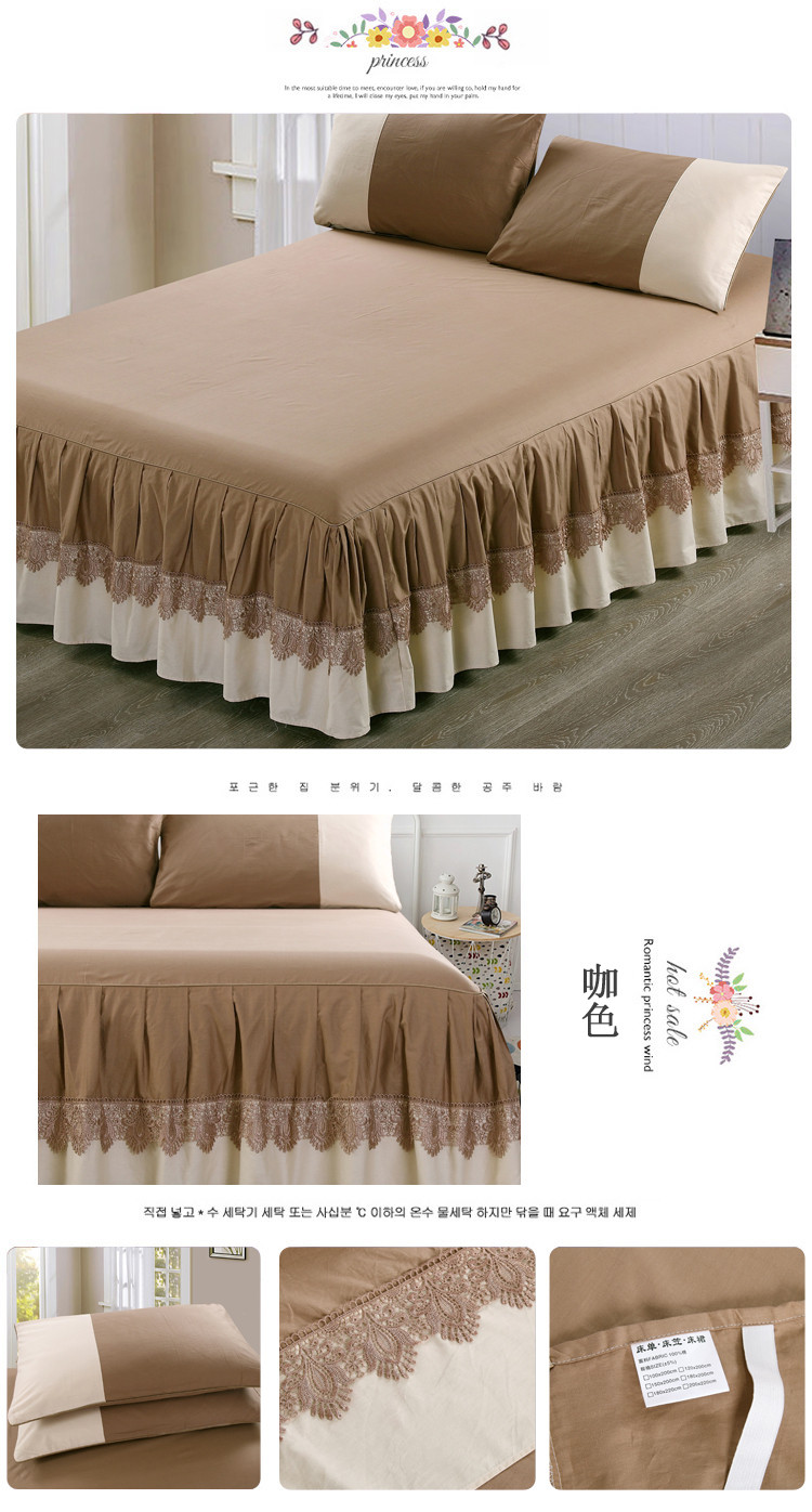商品名称:琉宿家纺 2023新款13372全棉双拼床裙 咖