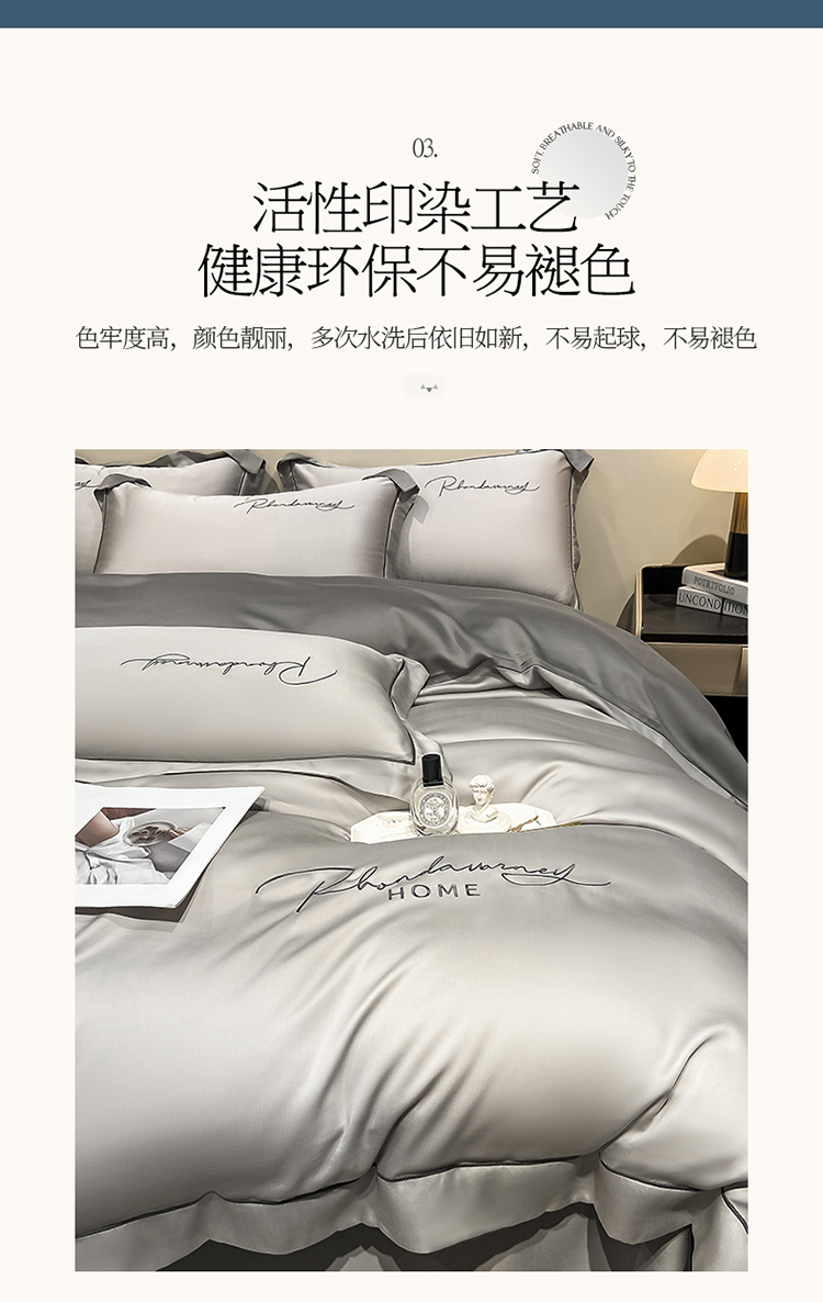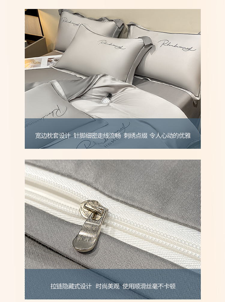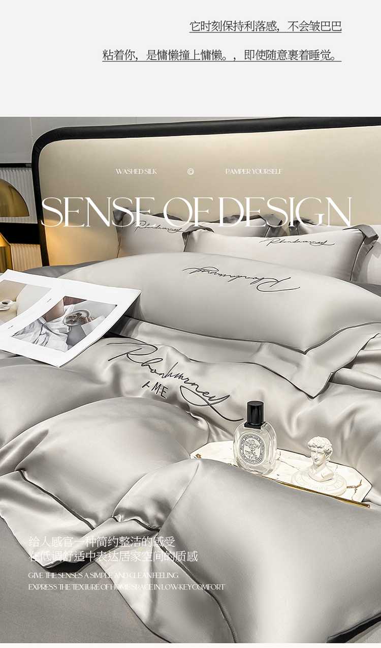 当前位置: 91家纺网 > 商品网购 > 床品套件 > 四件套 > 水洗真丝四件套 > 笙意家纺 水洗真丝R字母织带款四件套-威尔士 山灰+中灰