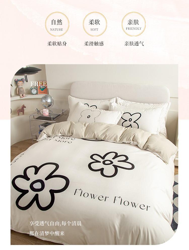 商品名称:宏源 2023新款大版数码印花糯糯棉四件套 花花世界