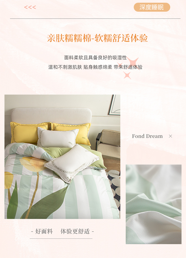 商品名称:宏源 2023新款大版数码印花糯糯棉四件套 郁金日记