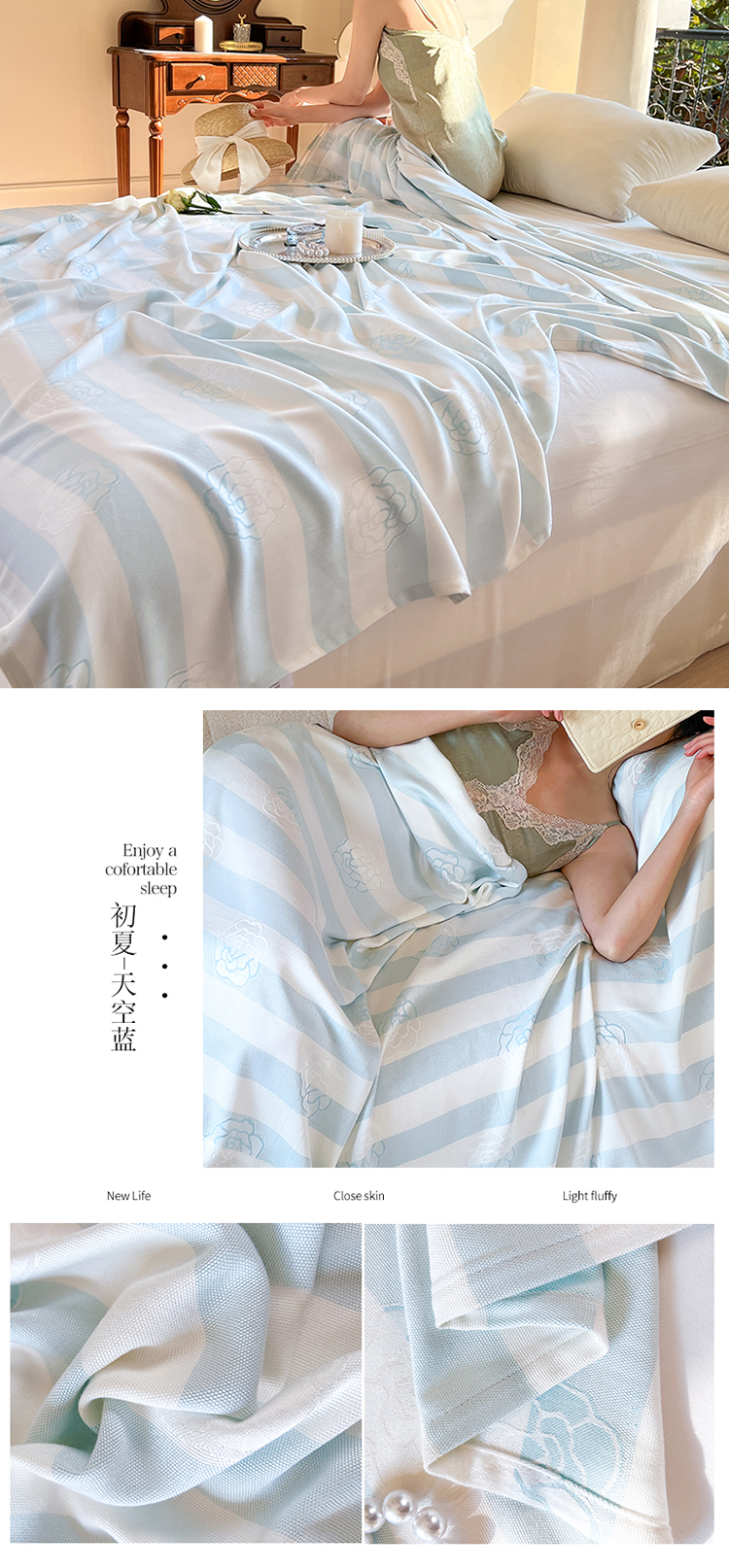 商品名称:麻依2023款竹纤维单层毛巾被盖毯夏凉被冷感毯竹纤维床单 初夏-天空蓝
