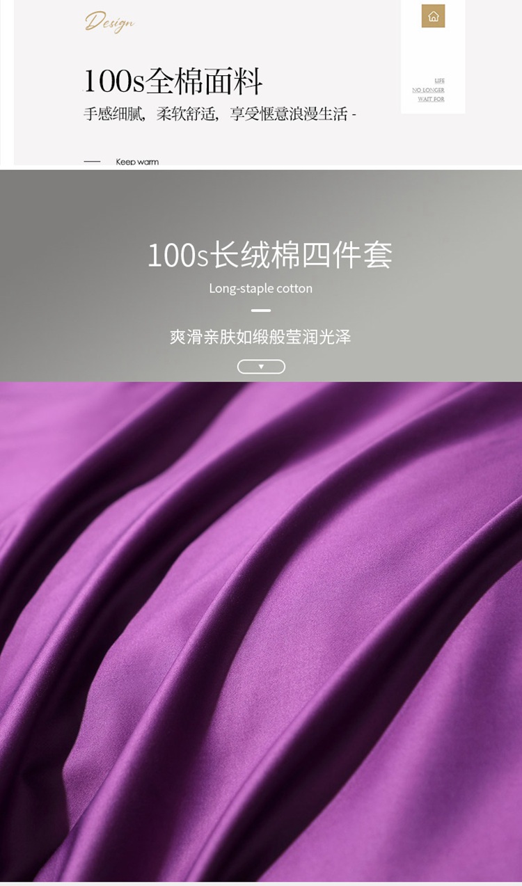 当前位置: 91家纺网 > 商品网购 > 床品套件 > 四件套 > 长绒棉四件套 > 晶缦家纺 2023新款纯棉50支双股贡缎长绒棉纯色多规格四件套 纯沐-罗兰紫