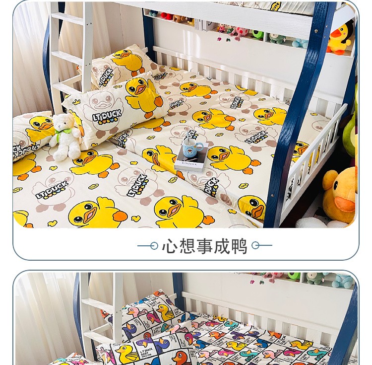 • 91家纺网 家纺一手货源 找家纺 小虾米 2023新款上下铺小黄鸭系列全棉床笠(可定制) 可爱鸭
