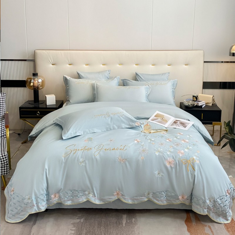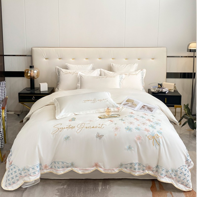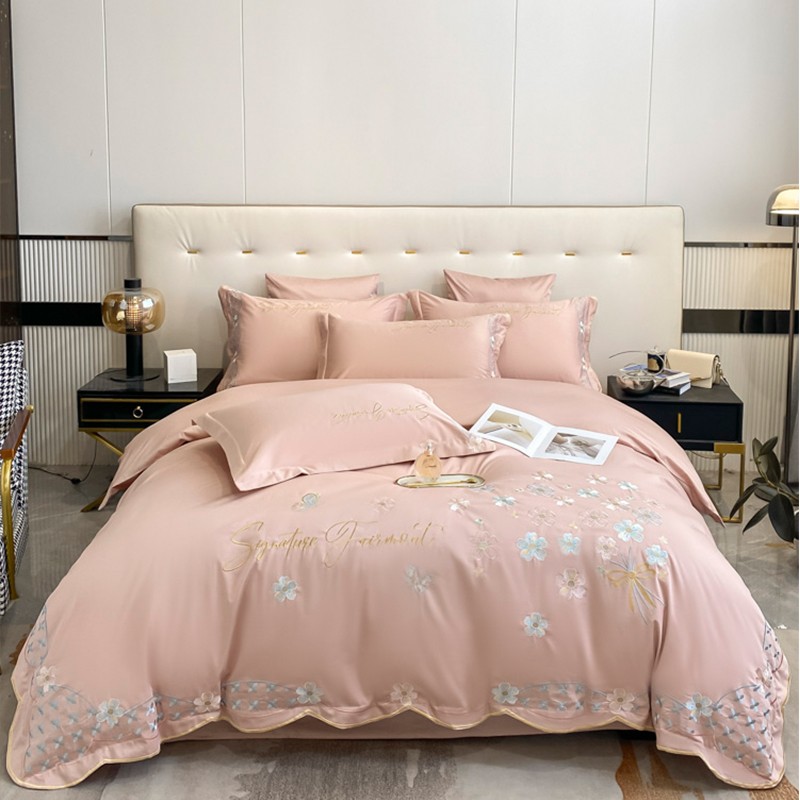 红嘴企鹅 2025新款水洗真丝绣花蝶恋花四件套 蝶恋花粉