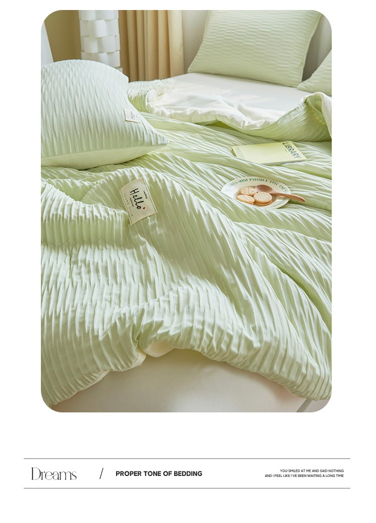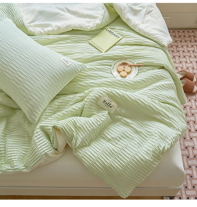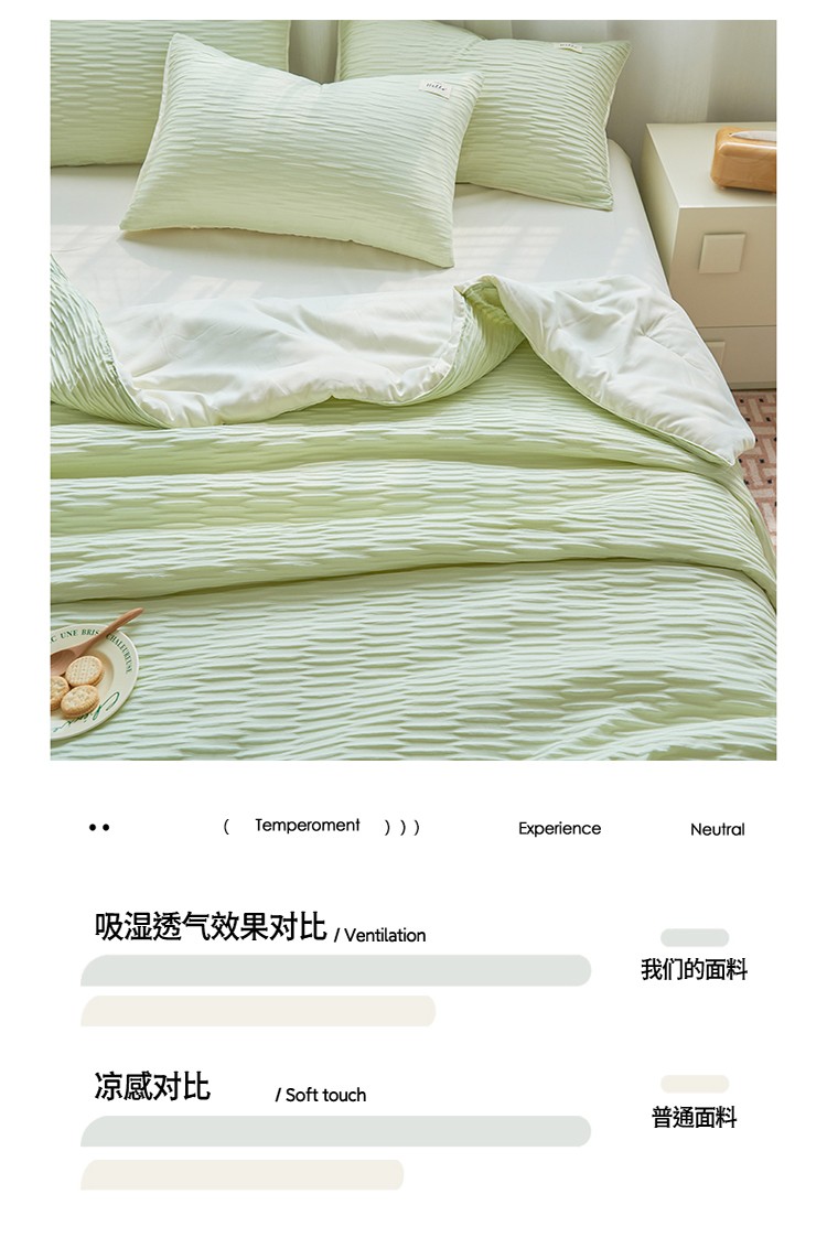 商品名称:畅销被业2024新款直播爆款泡泡纱夏被夏凉被空调被四件套 芥末绿