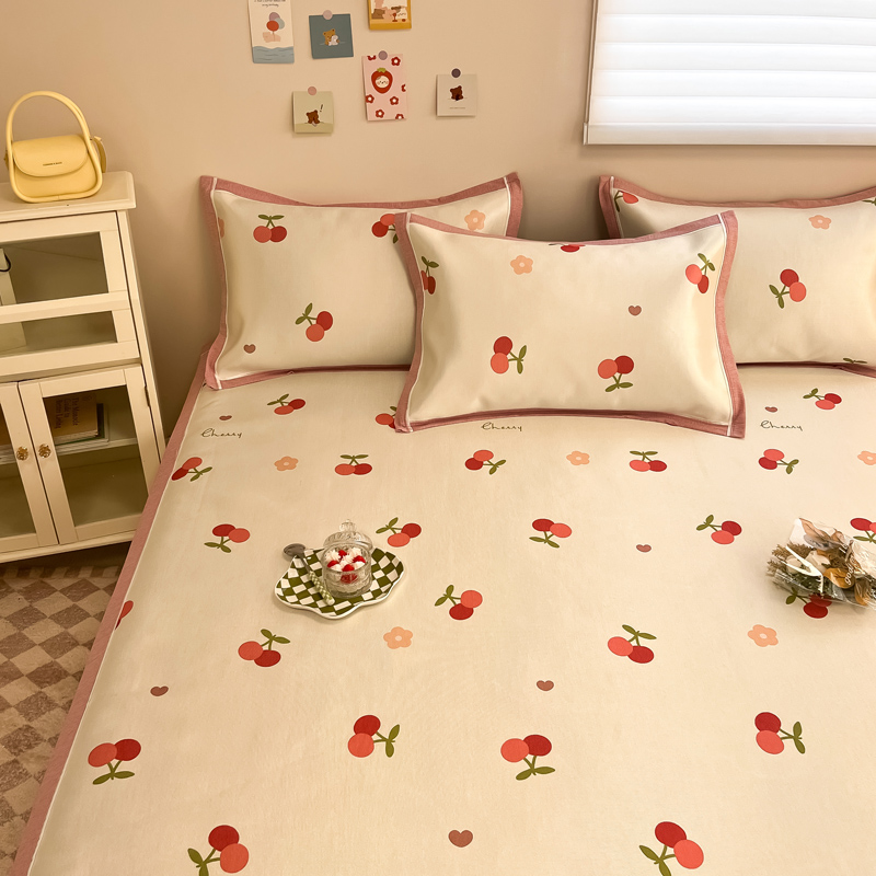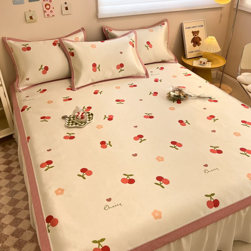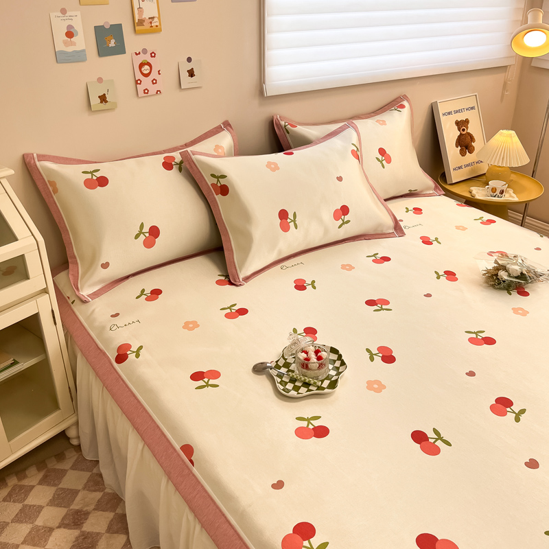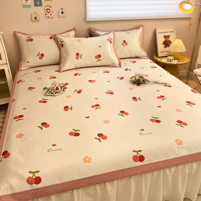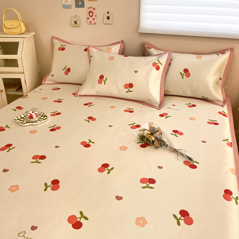 商品名称:懒猫 2024新款600D数码印花冰丝席 风格二 小樱桃