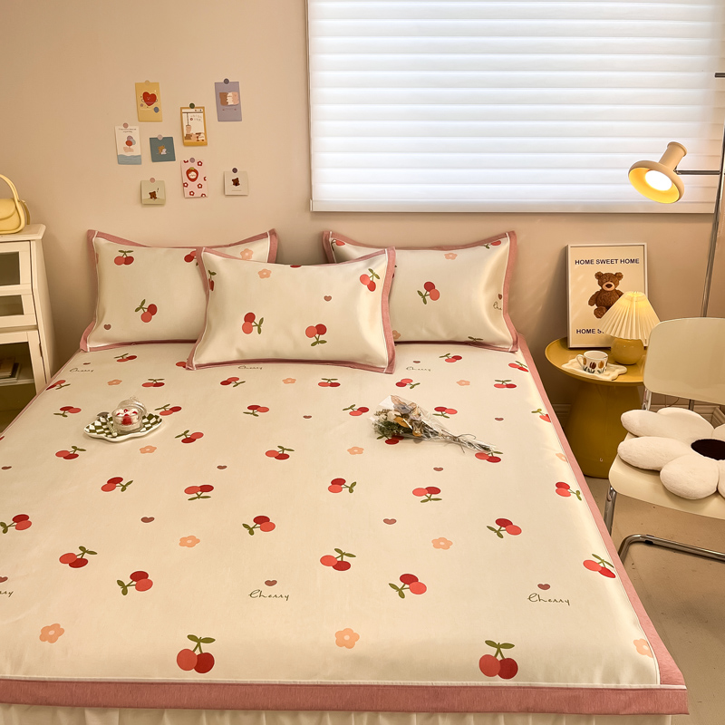 懒猫 2024新款600D数码印花冰丝席 风格二 小樱桃