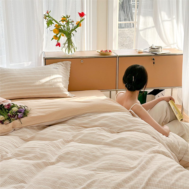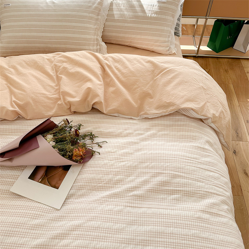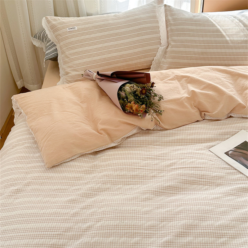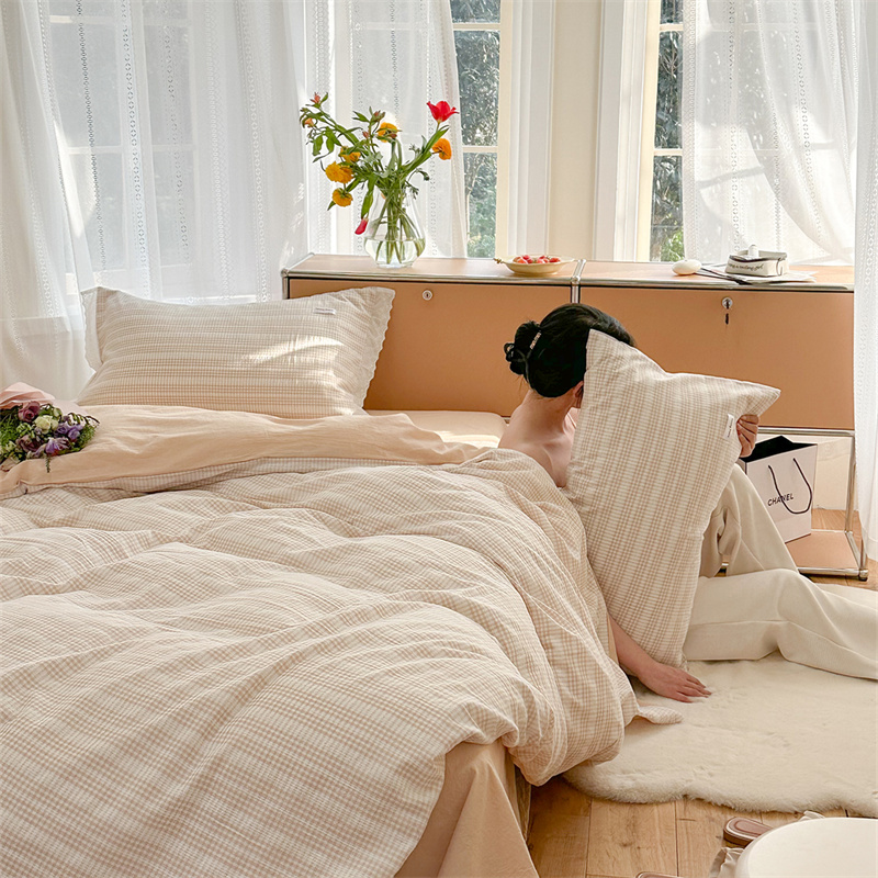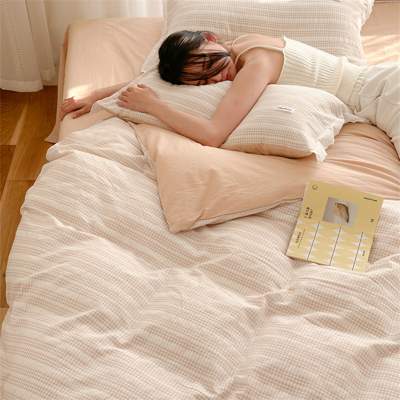 (总)洋铭区 2023新款色织水洗棉格子四件套,牛油果格,青桃格,山竹格,香橙格