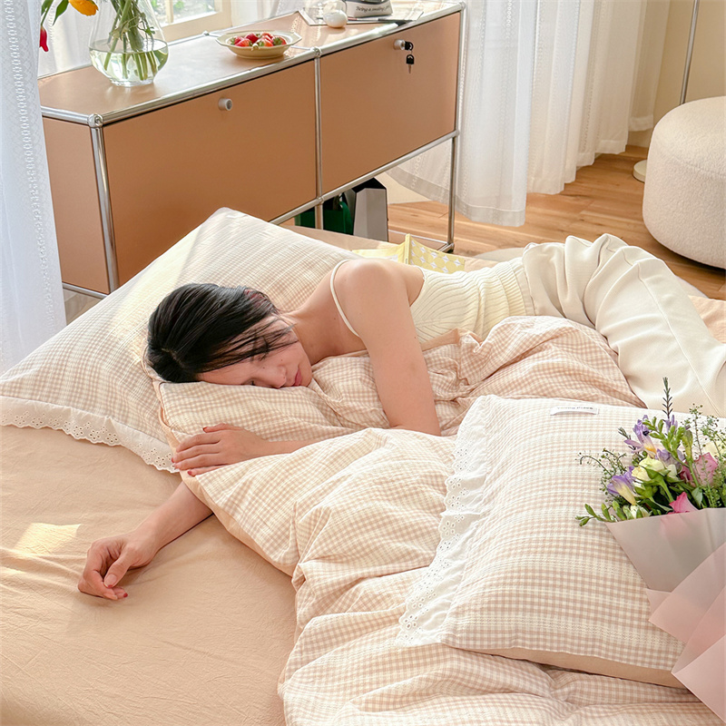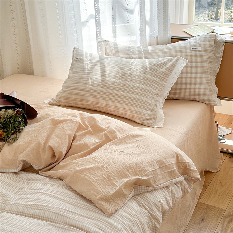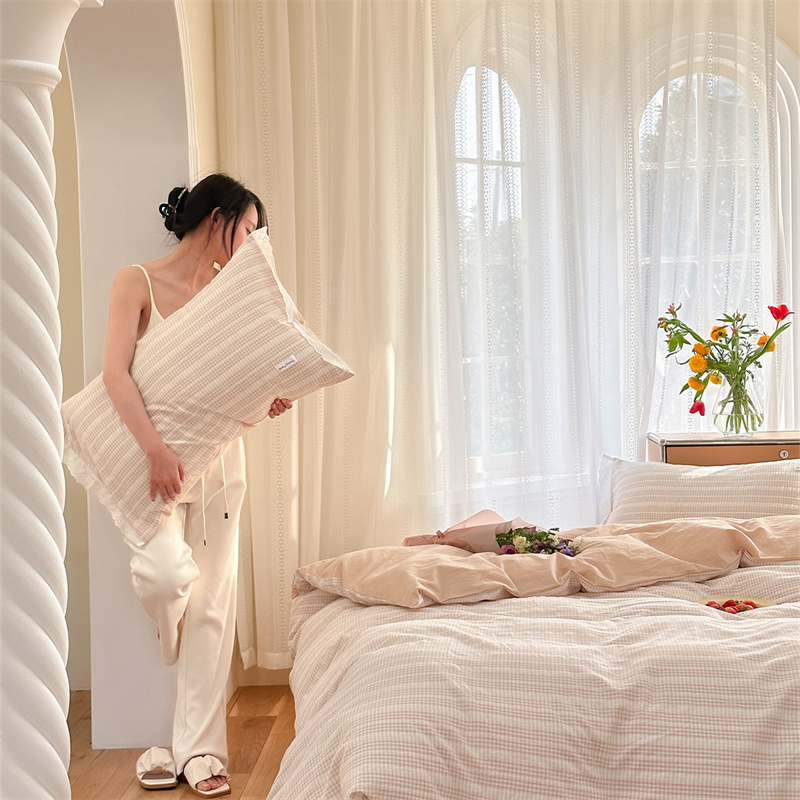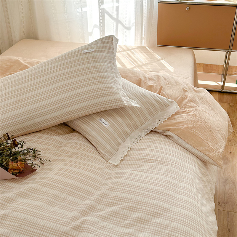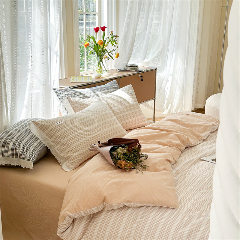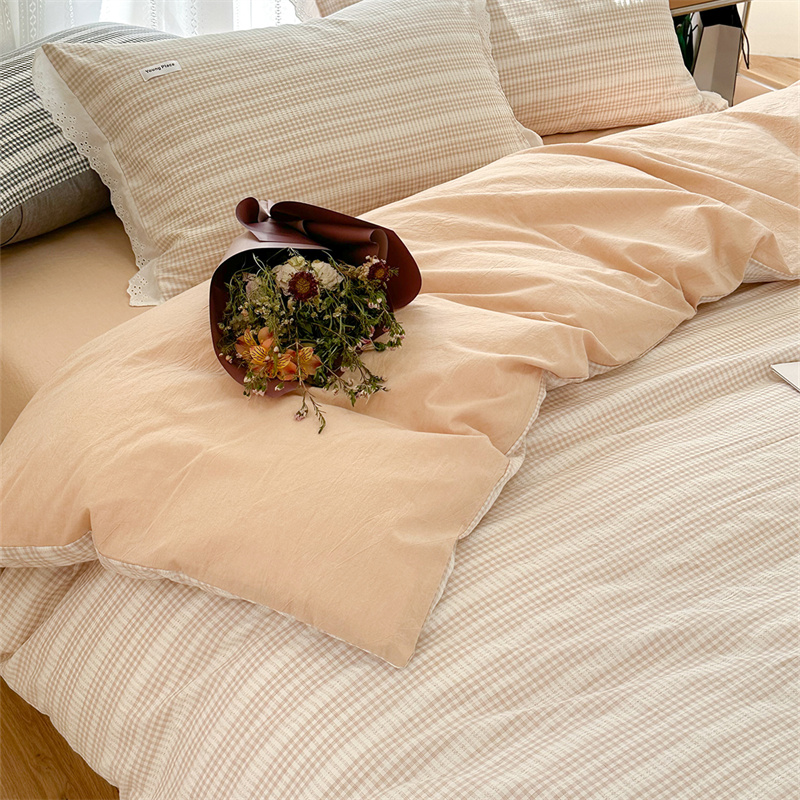 (总)洋铭区 2023新款色织水洗棉格子四件套,牛油果格,青桃格,山竹格,香橙格