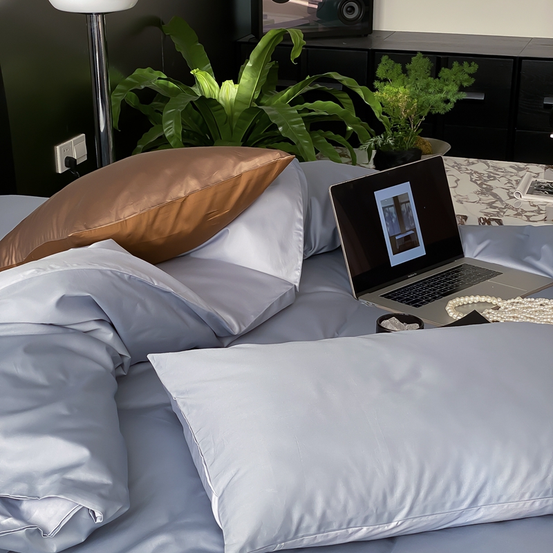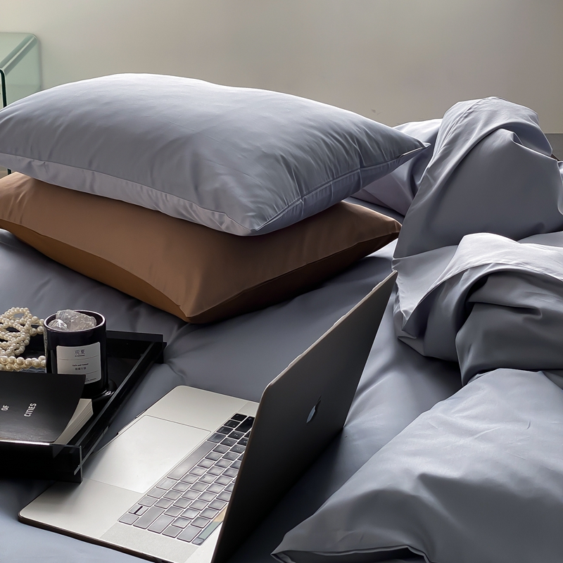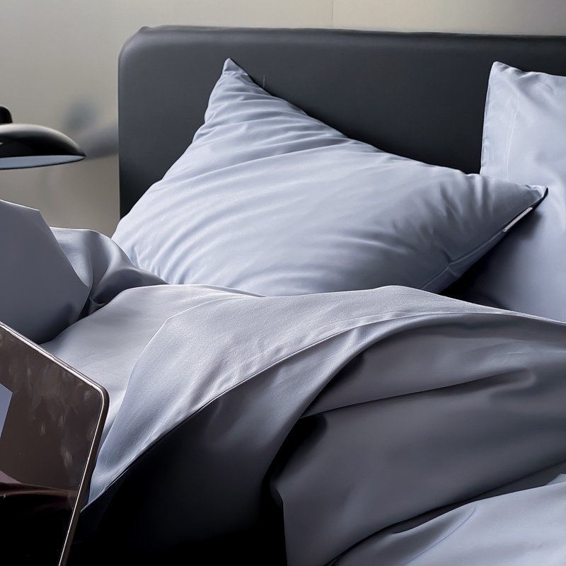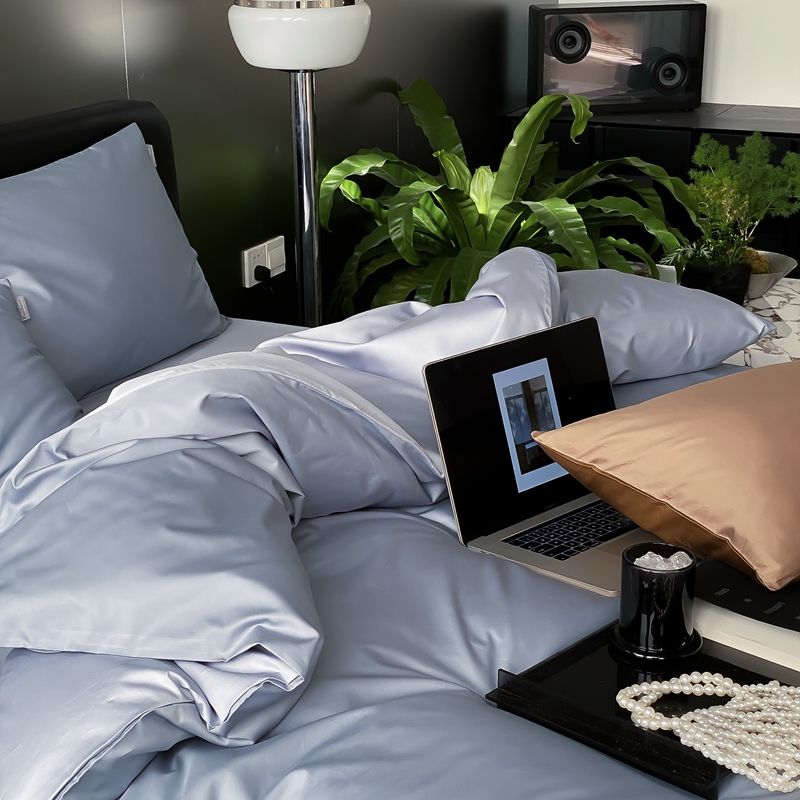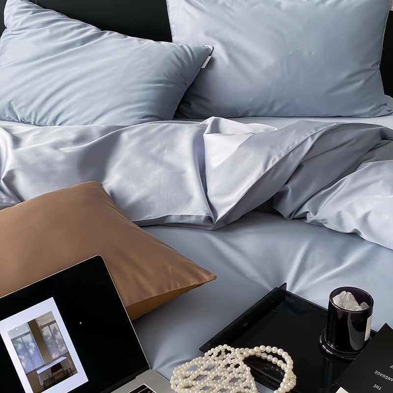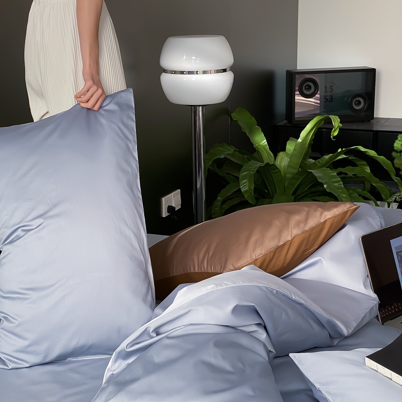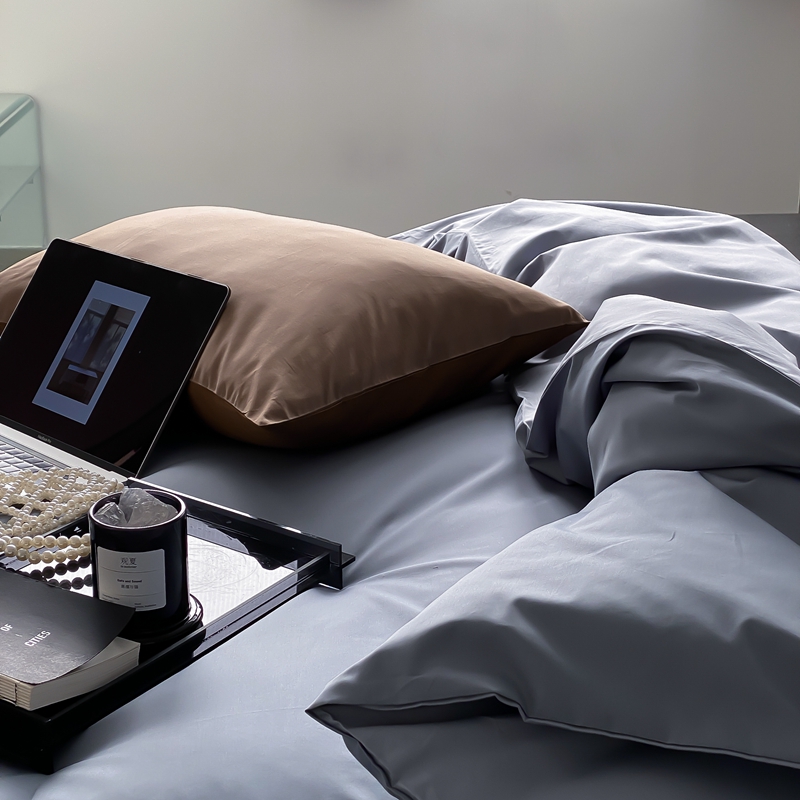梦享生活家居 2023新款100支长绒棉贡缎双拼四件套 神秘蓝