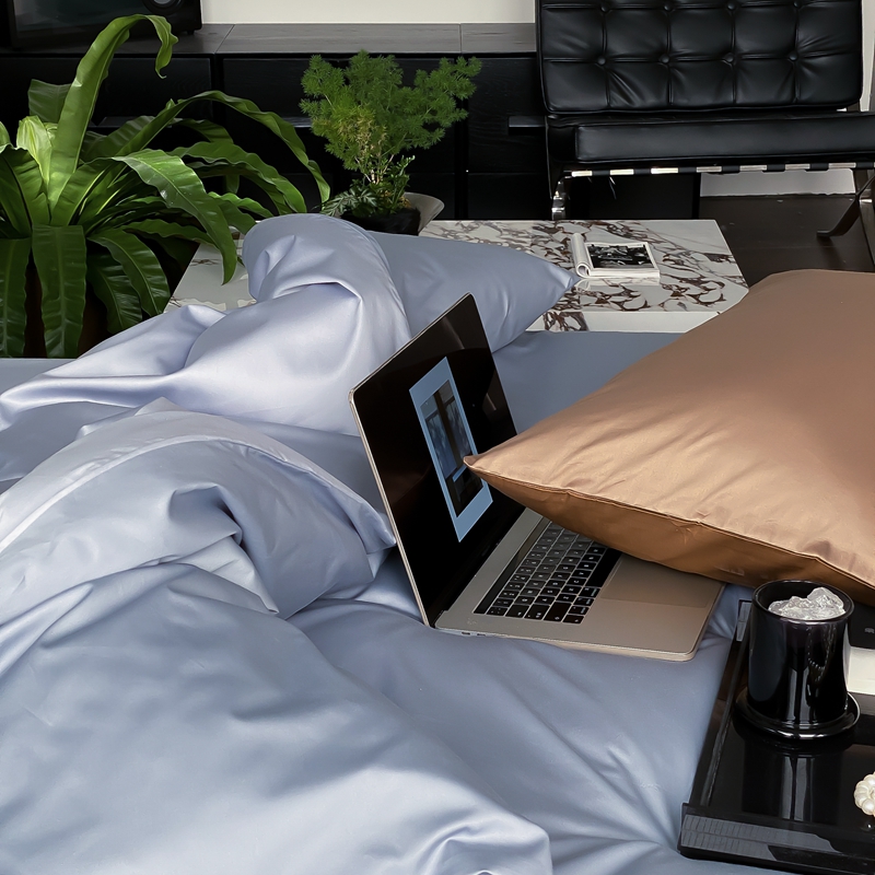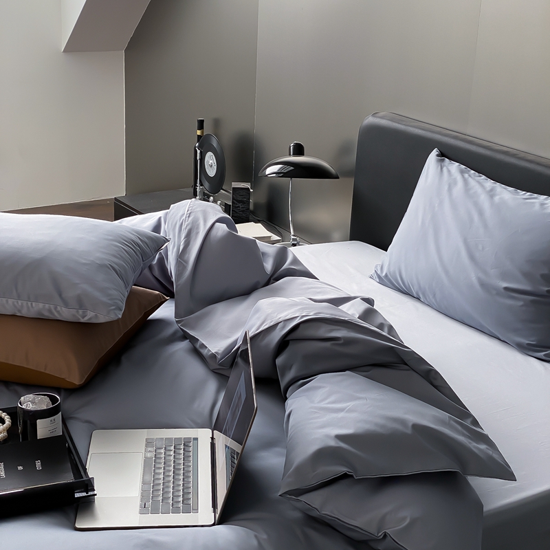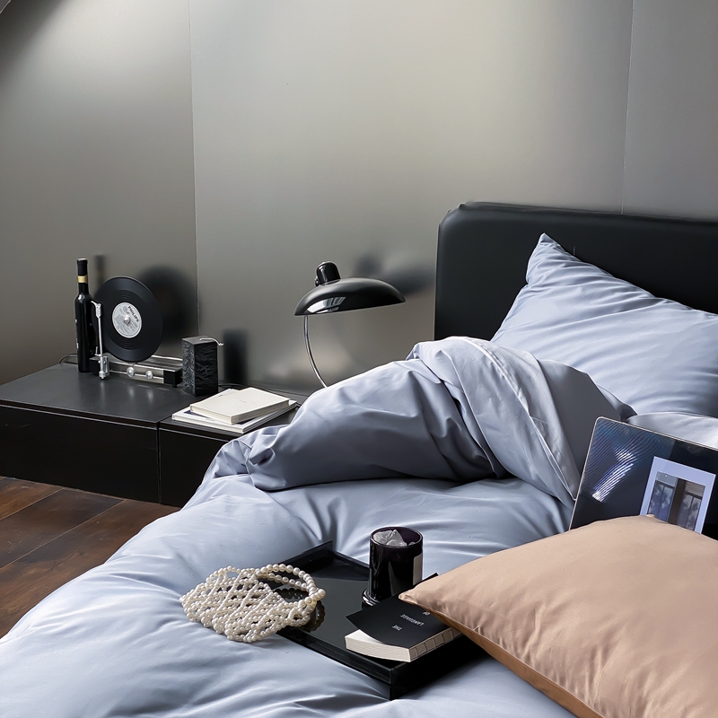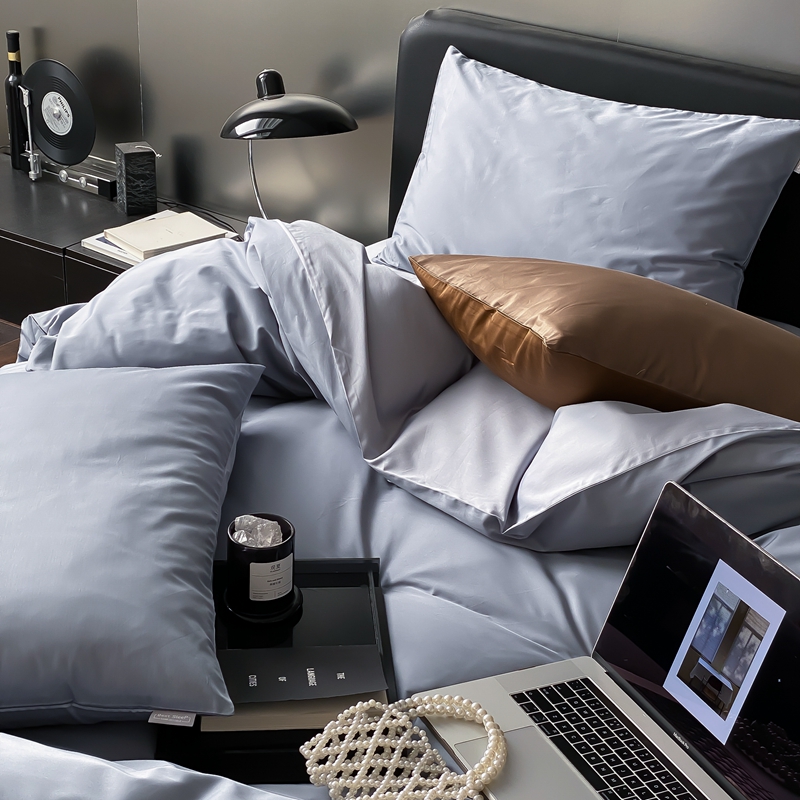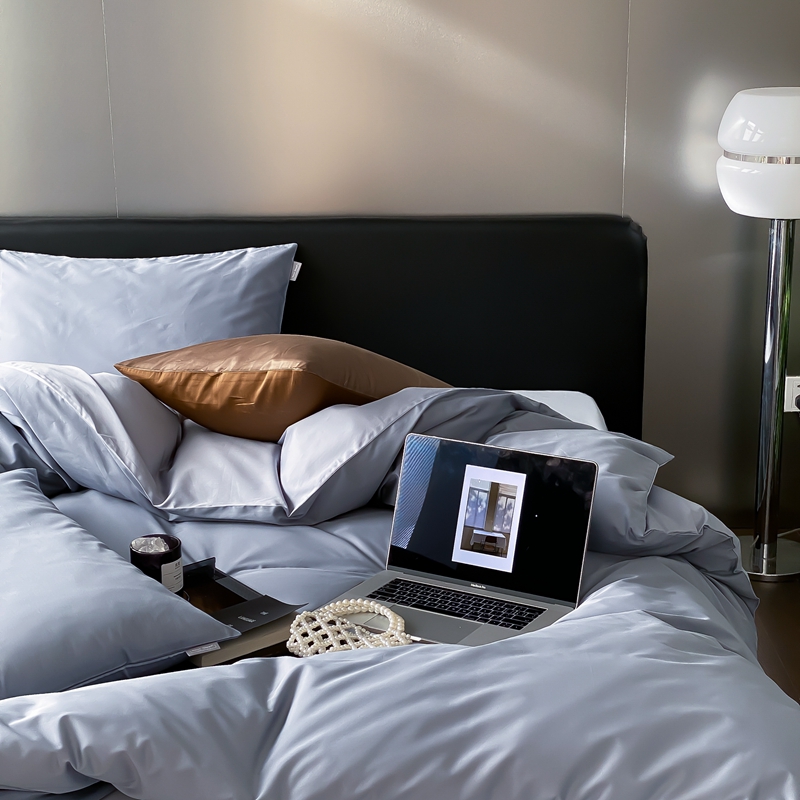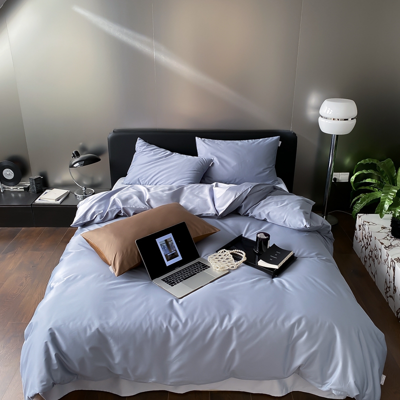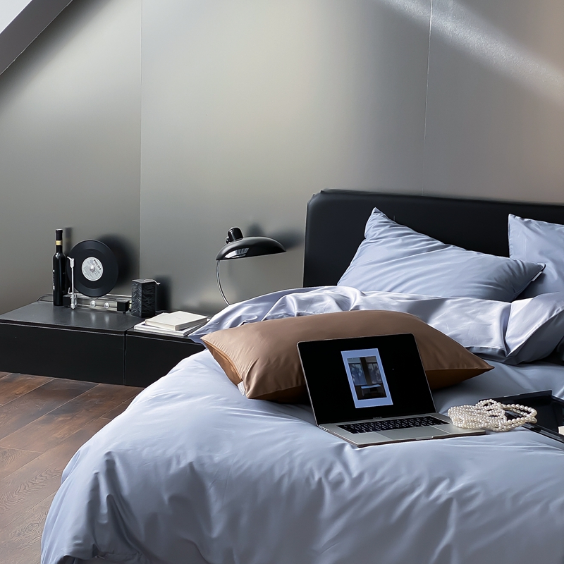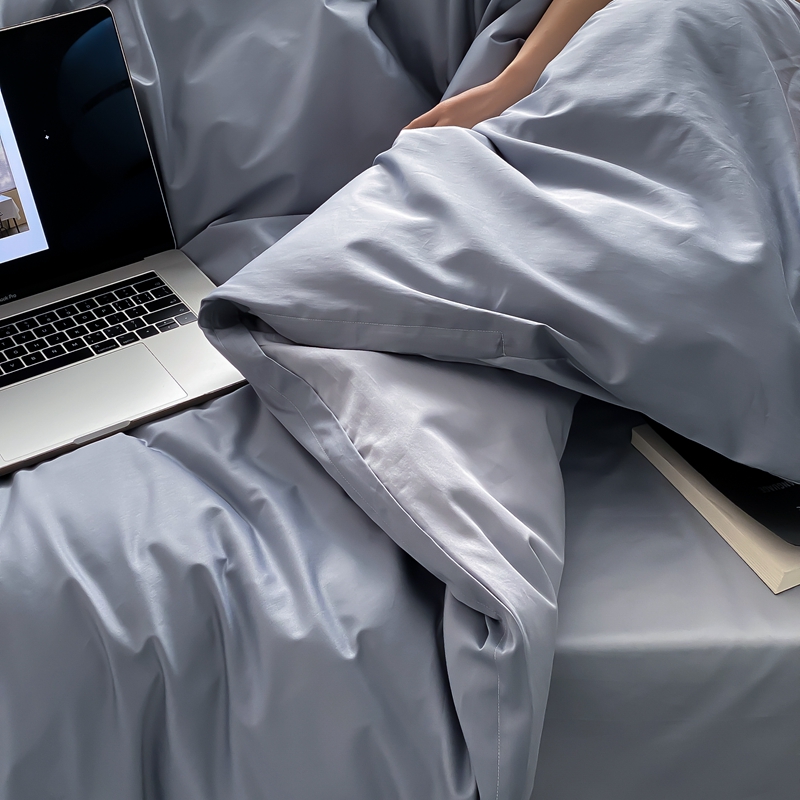 梦享生活家居 2023新款100支长绒棉贡缎双拼四件套 神秘蓝
