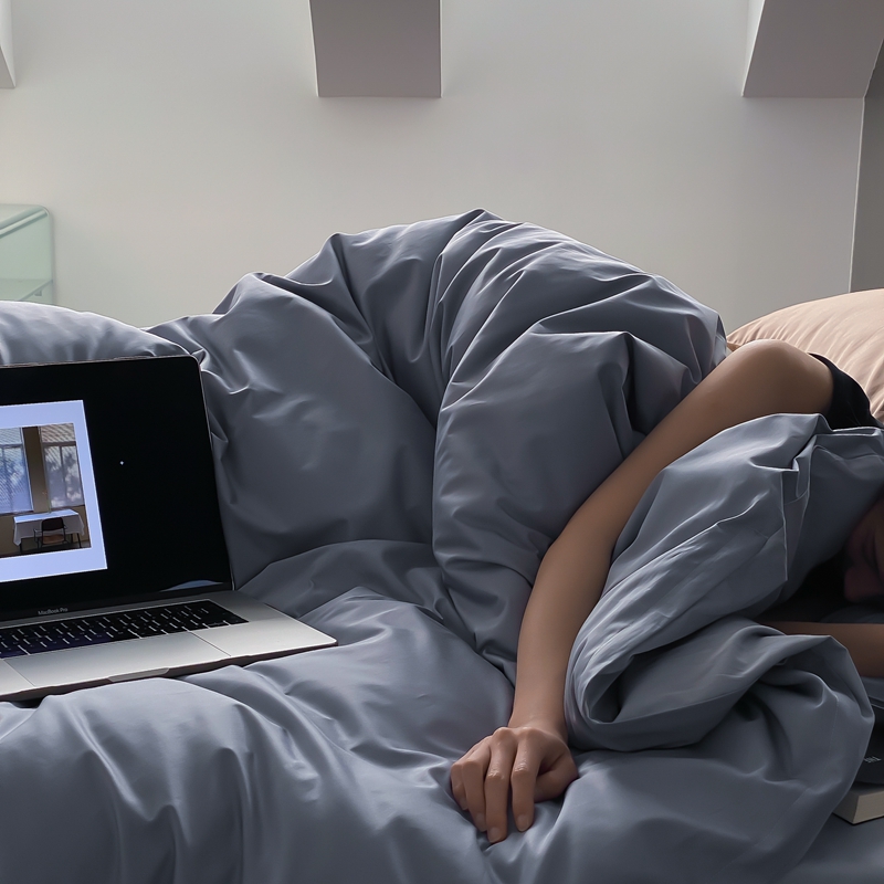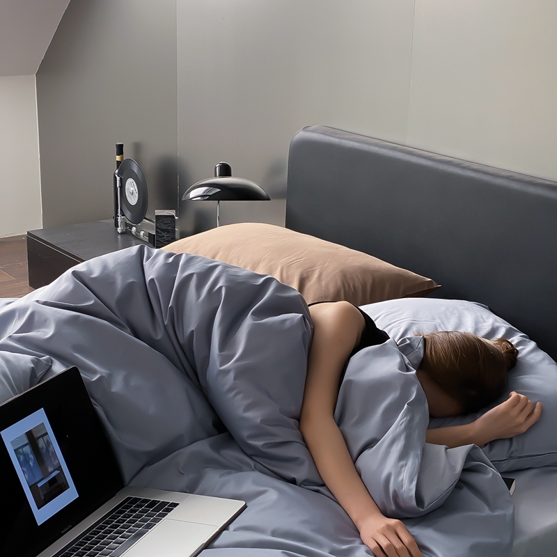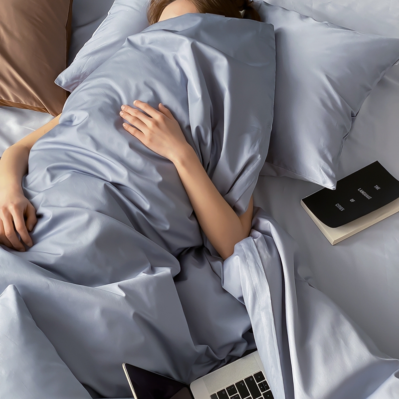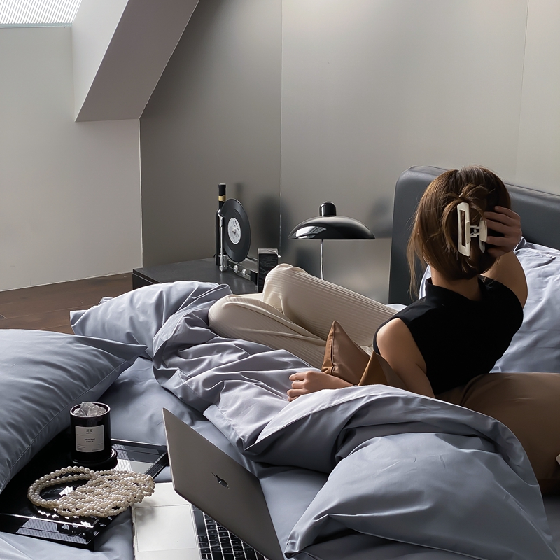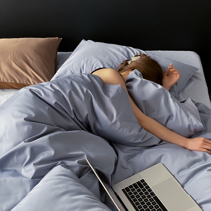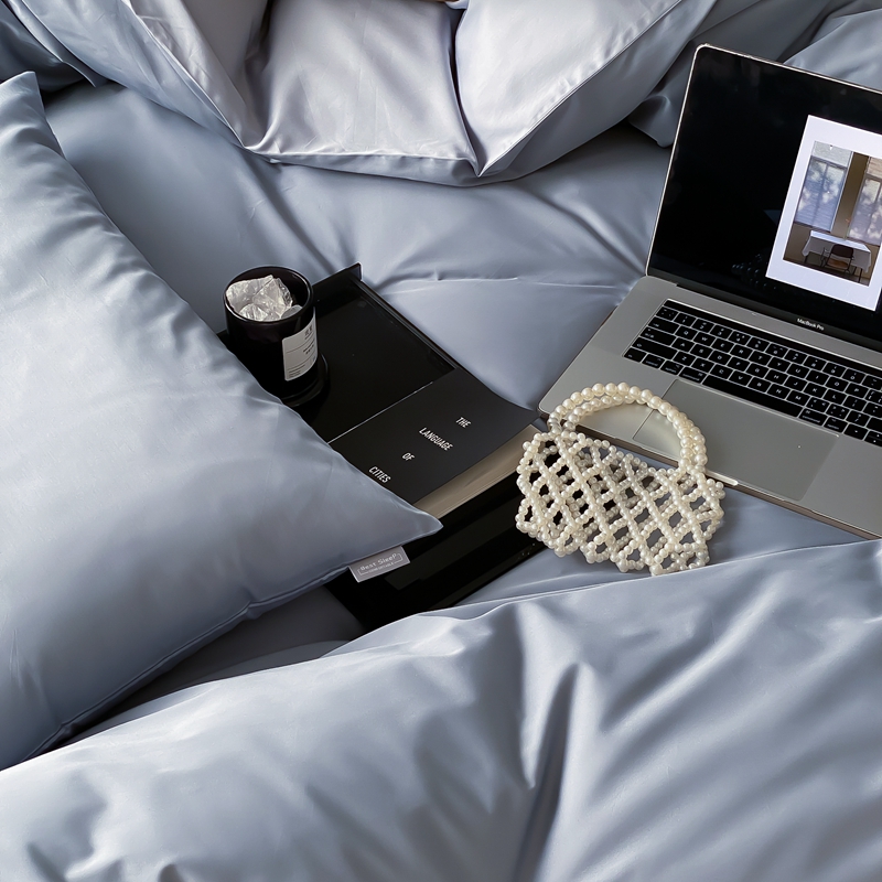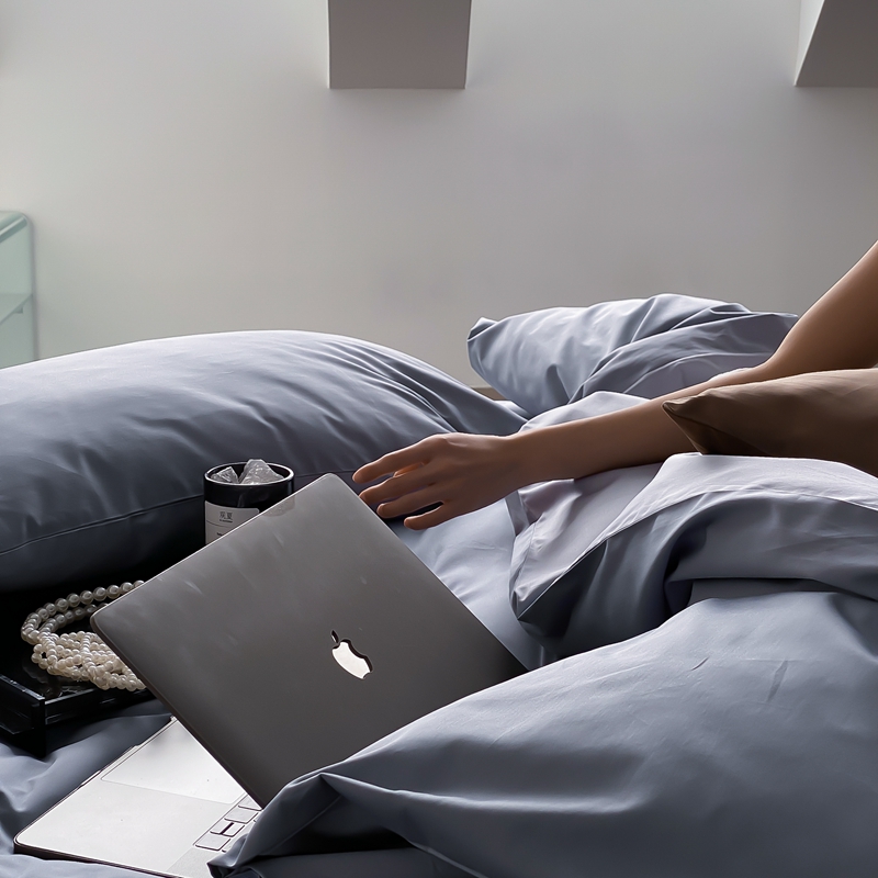 梦享生活家居 2023新款100支长绒棉贡缎双拼四件套 神秘蓝