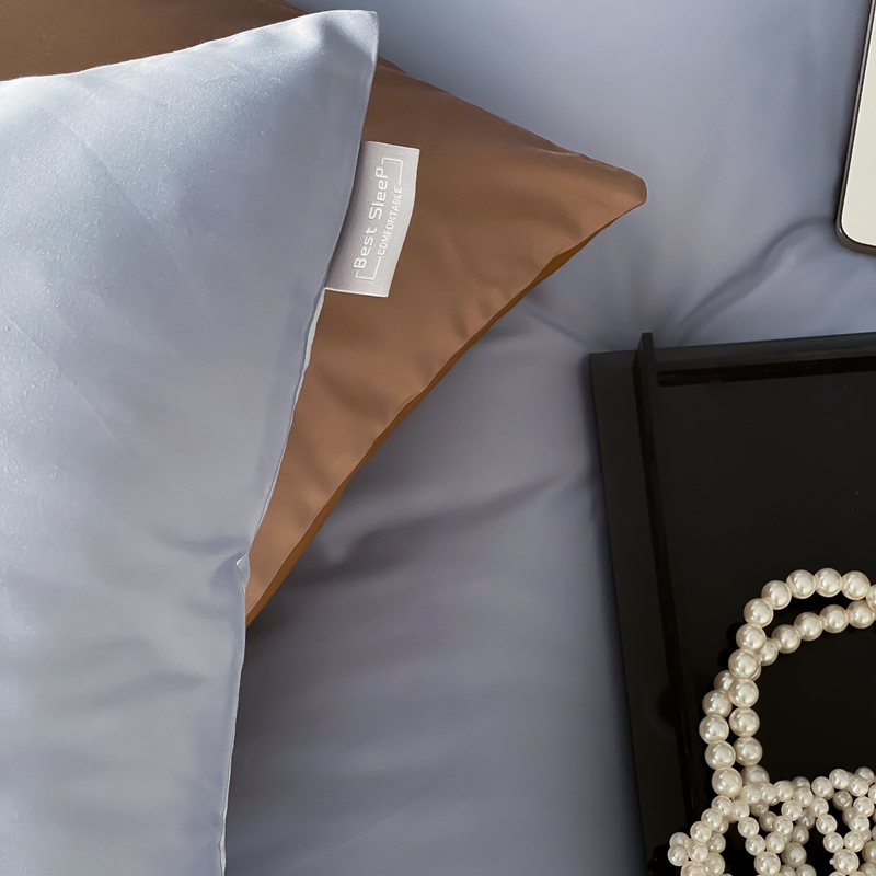 总梦享生活 2022新款100支水洗棉双拼全棉四件套纯棉套件,奥丁黄双拼,冰月蓝双拼,淡蓝双拼,牛油果双拼,深咖双拼,松蓝双拼,海蓝+咖