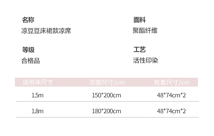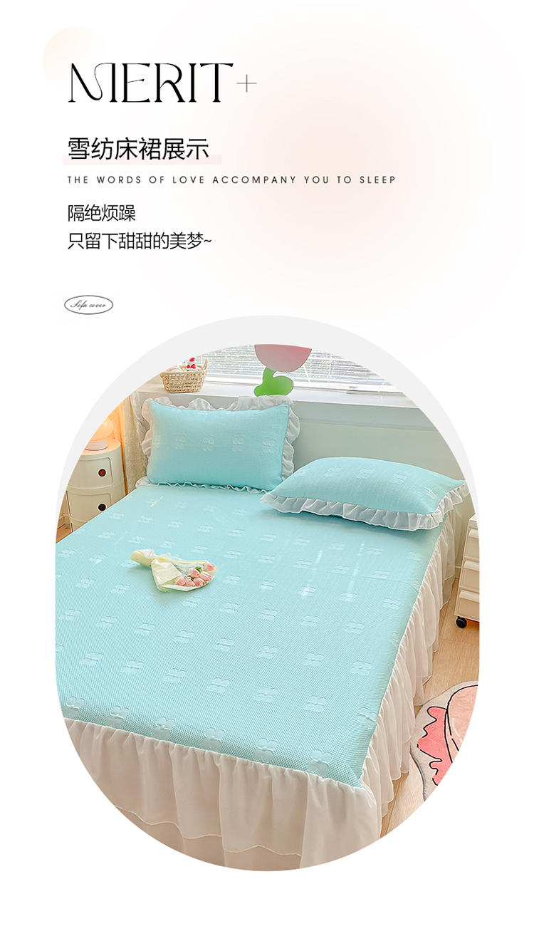 商品名称:同田 2023新款凉豆豆床裙款凉席冰丝凉感豆豆席 碧蓝