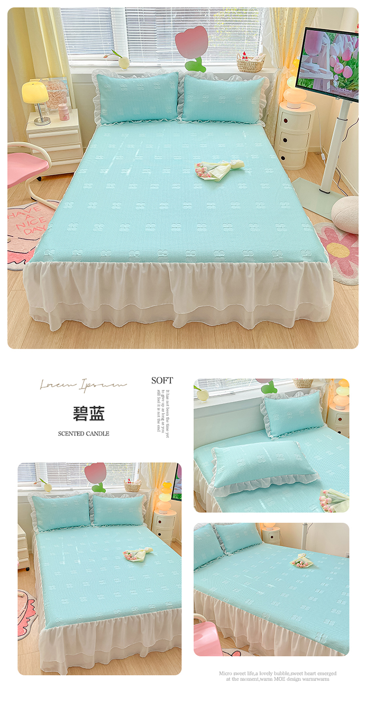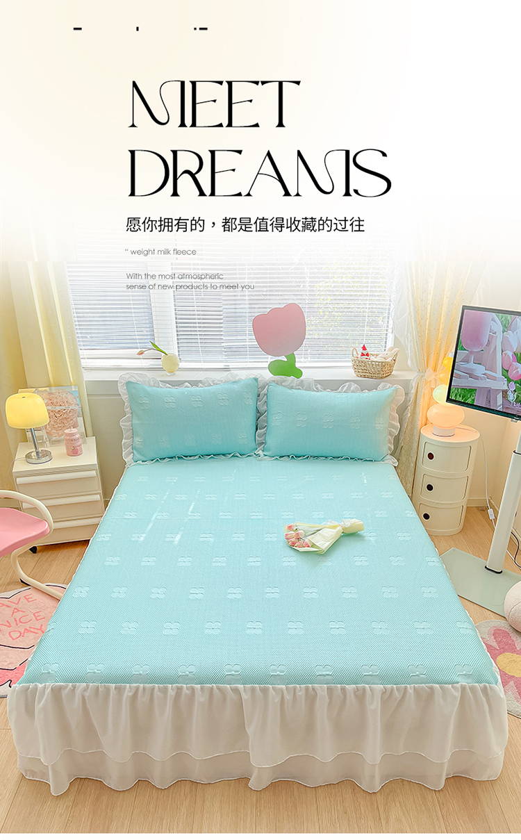 同田 2023新款凉豆豆床裙款凉席冰丝凉感豆豆席 碧蓝