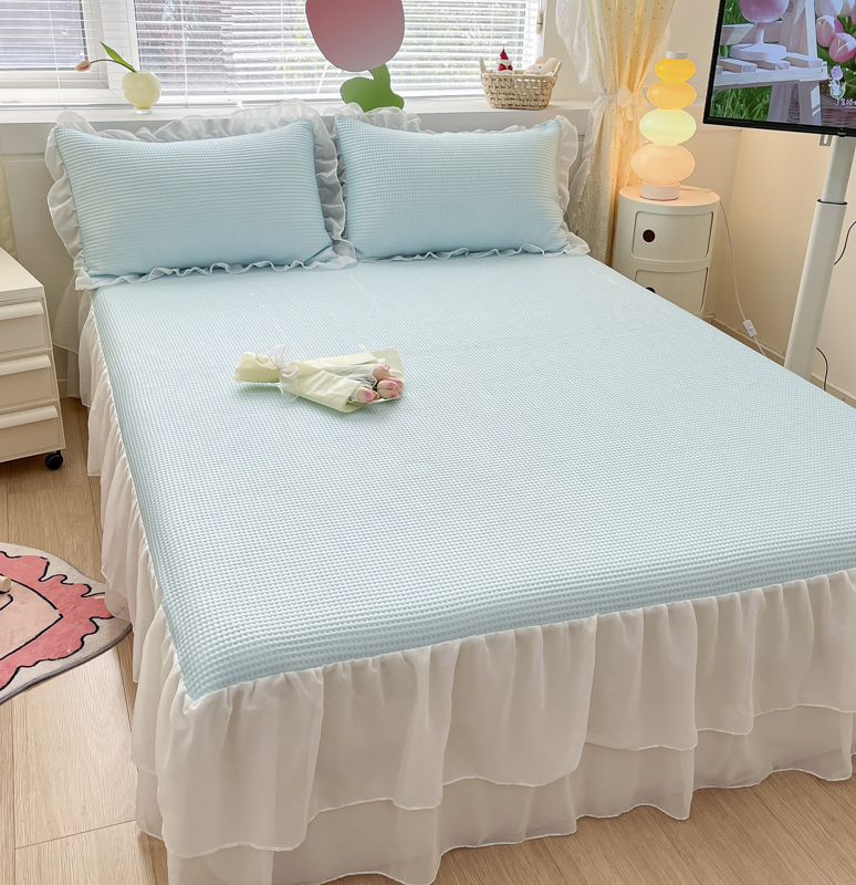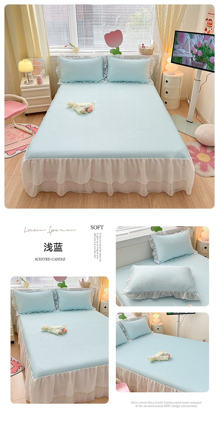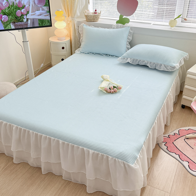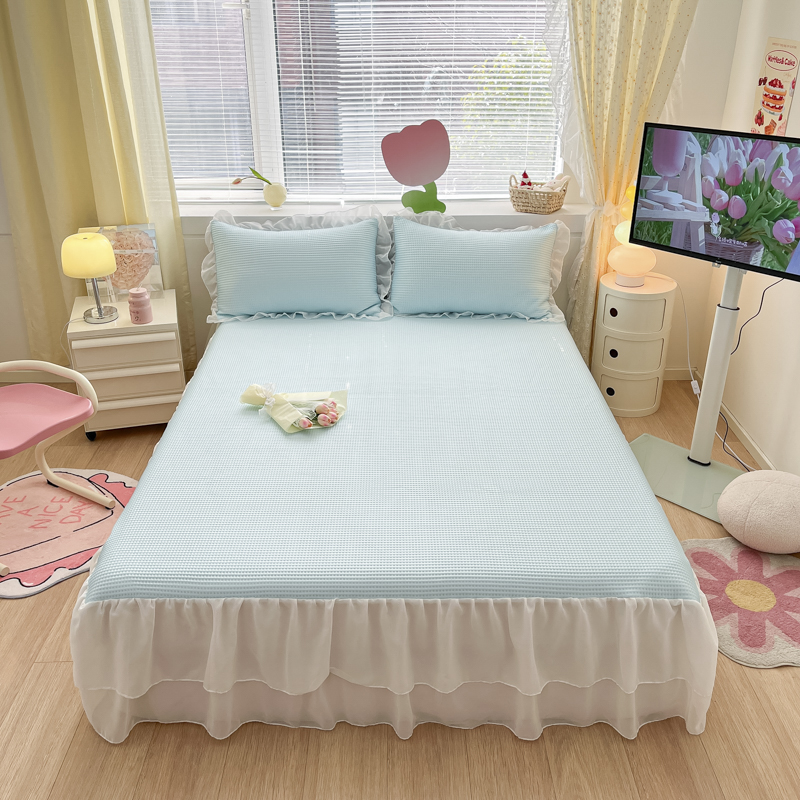 同田 2023新款凉豆豆床裙款凉席冰丝凉感豆豆席 浅蓝