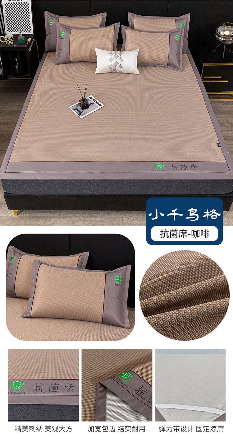 商品名称:简一2024新款小千鸟格系列抗菌凉席床单款 小千鸟格-咖啡
