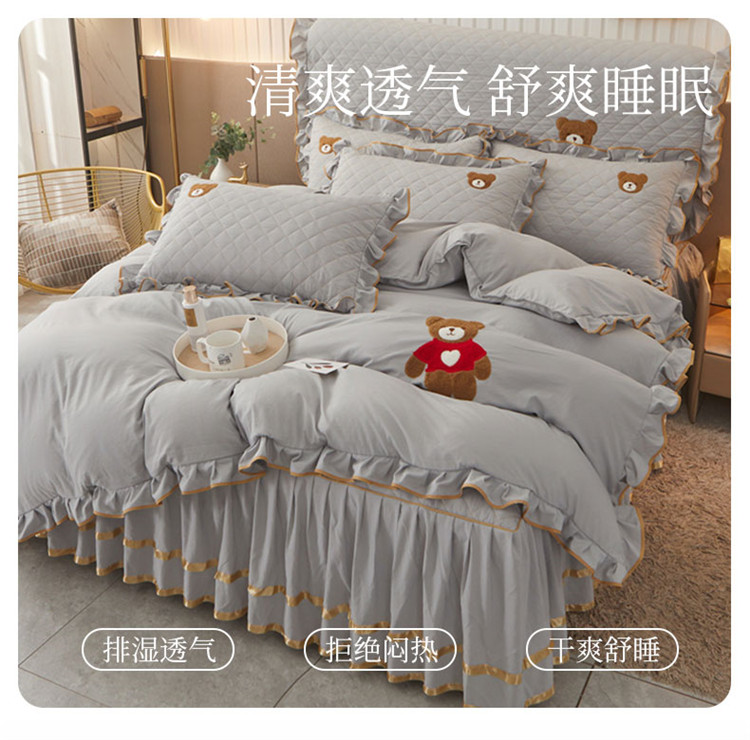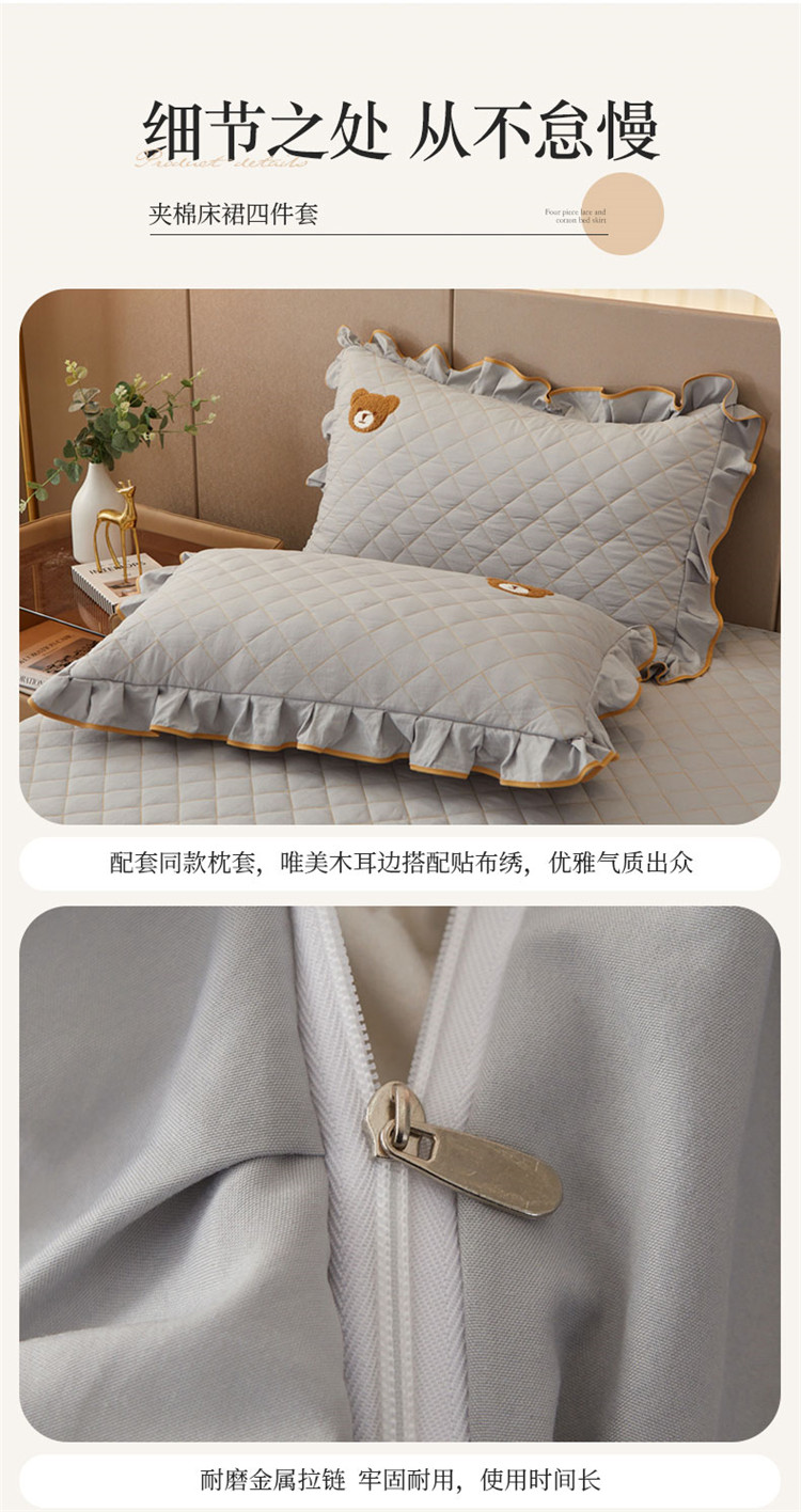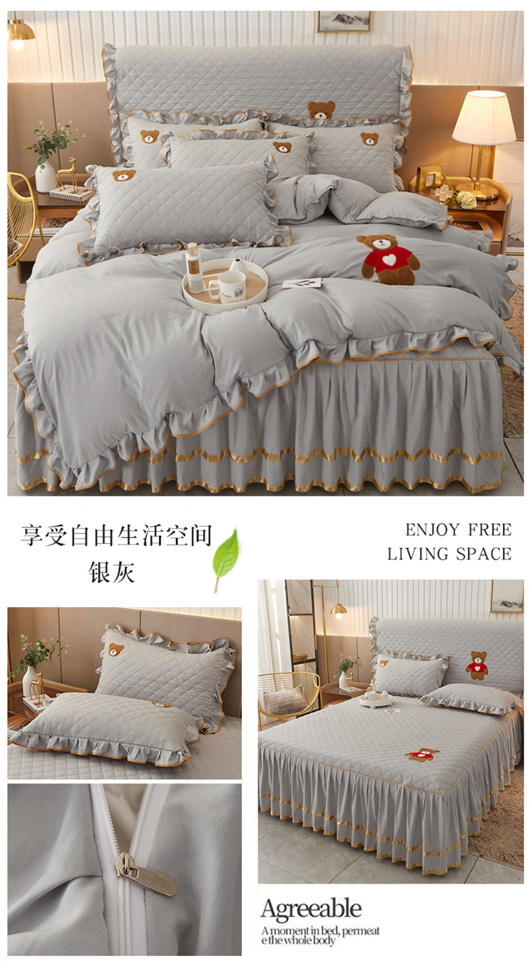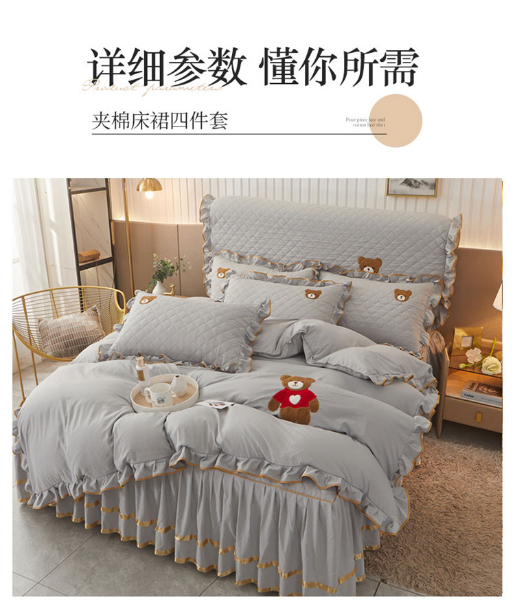当前位置: 91家纺网 > 商品网购 > 床品套件 > 四件套 > 水洗棉四件套 > 屹成家纺 2024年水洗棉毛巾绣款床裙四件套 银灰