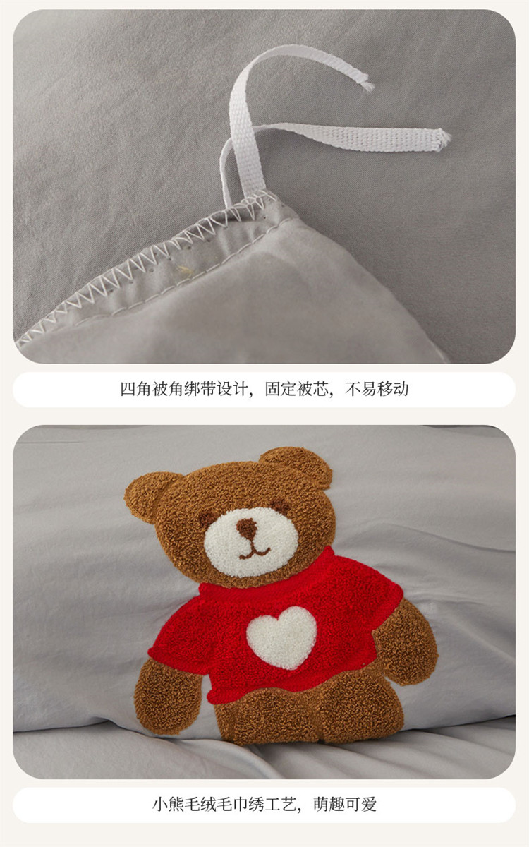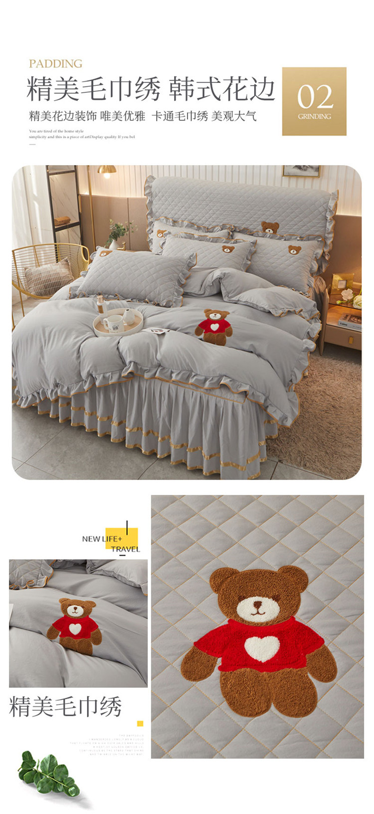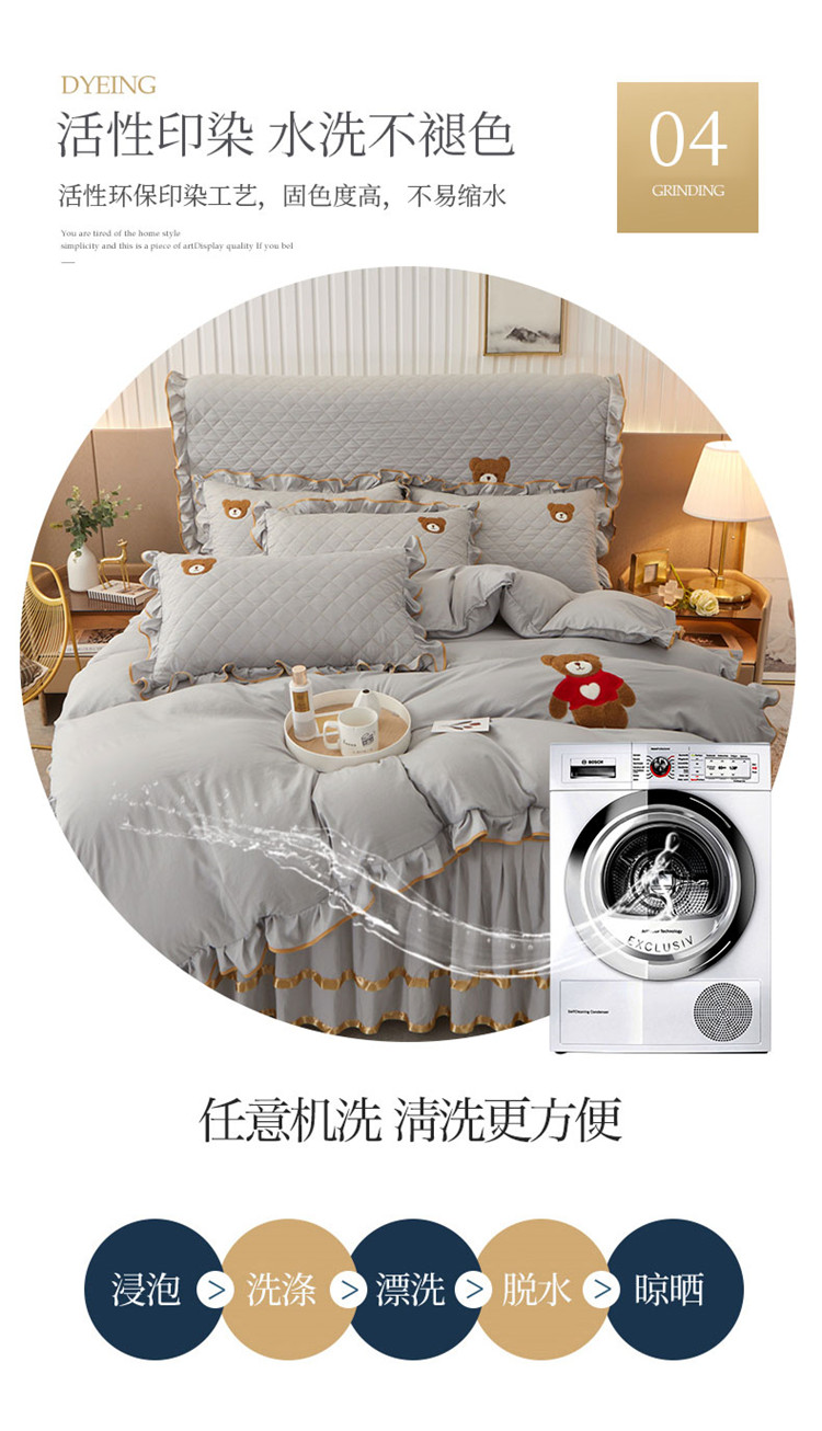 当前位置: 91家纺网 > 商品网购 > 床品套件 > 四件套 > 水洗棉四件套 > 屹成家纺 2024年水洗棉毛巾绣款床裙四件套 银灰
