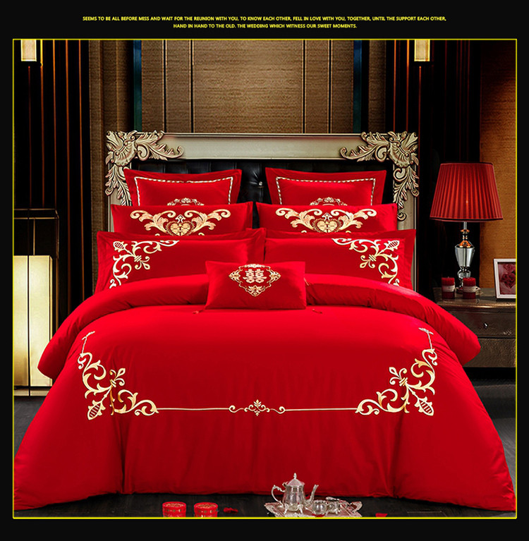 慕她婚庆四件套大红色结婚全棉纯棉简约刺绣花多件套直播 欧典风情