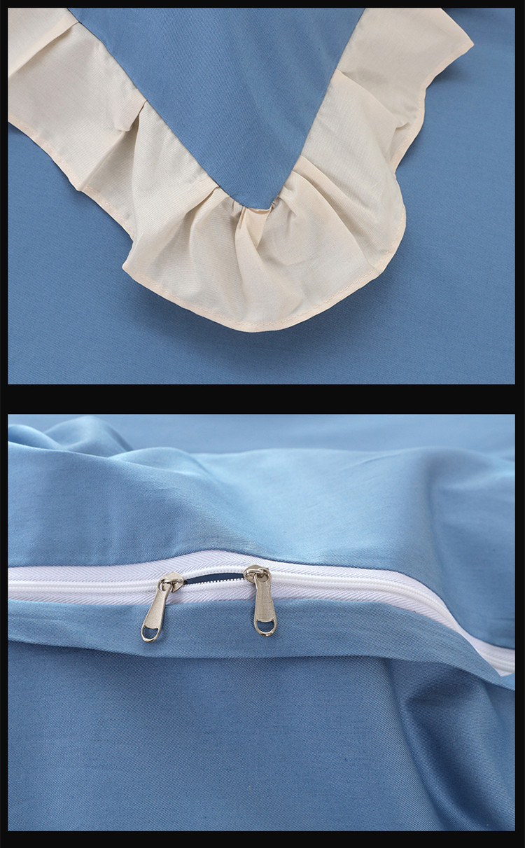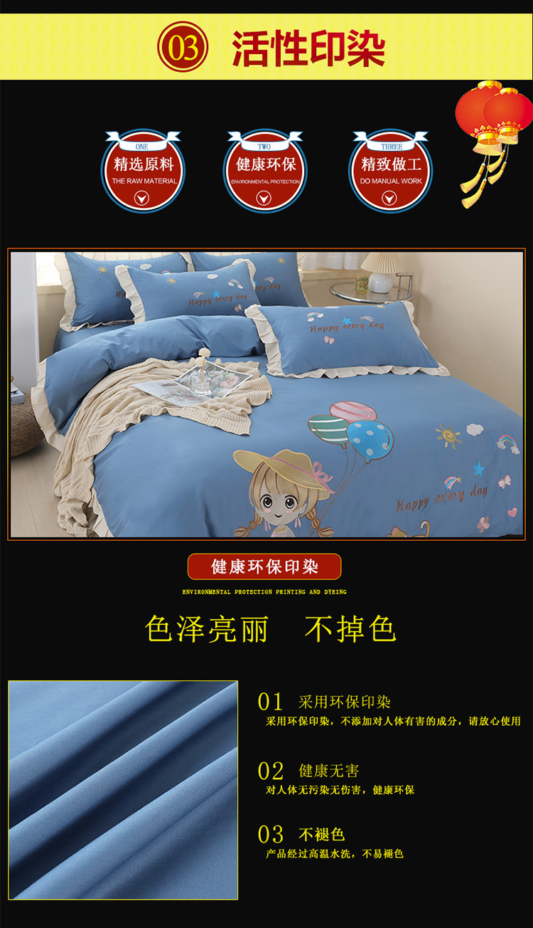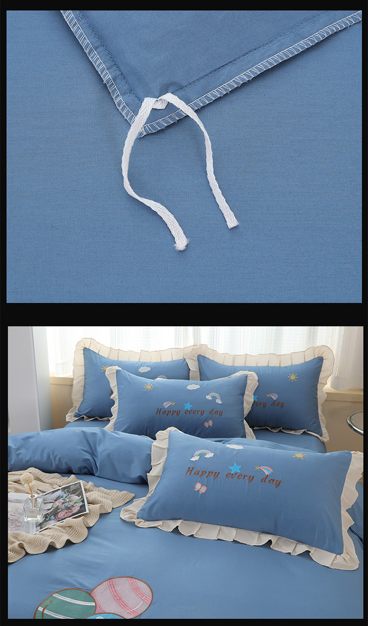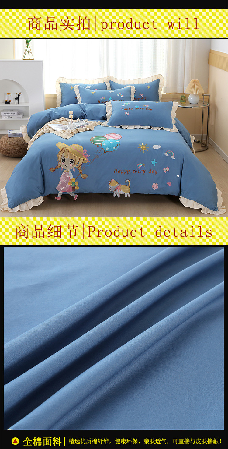 商品名称:慕她婚庆四件套大红色结婚全棉纯棉刺绣花多件套直播 快乐女孩蓝灰