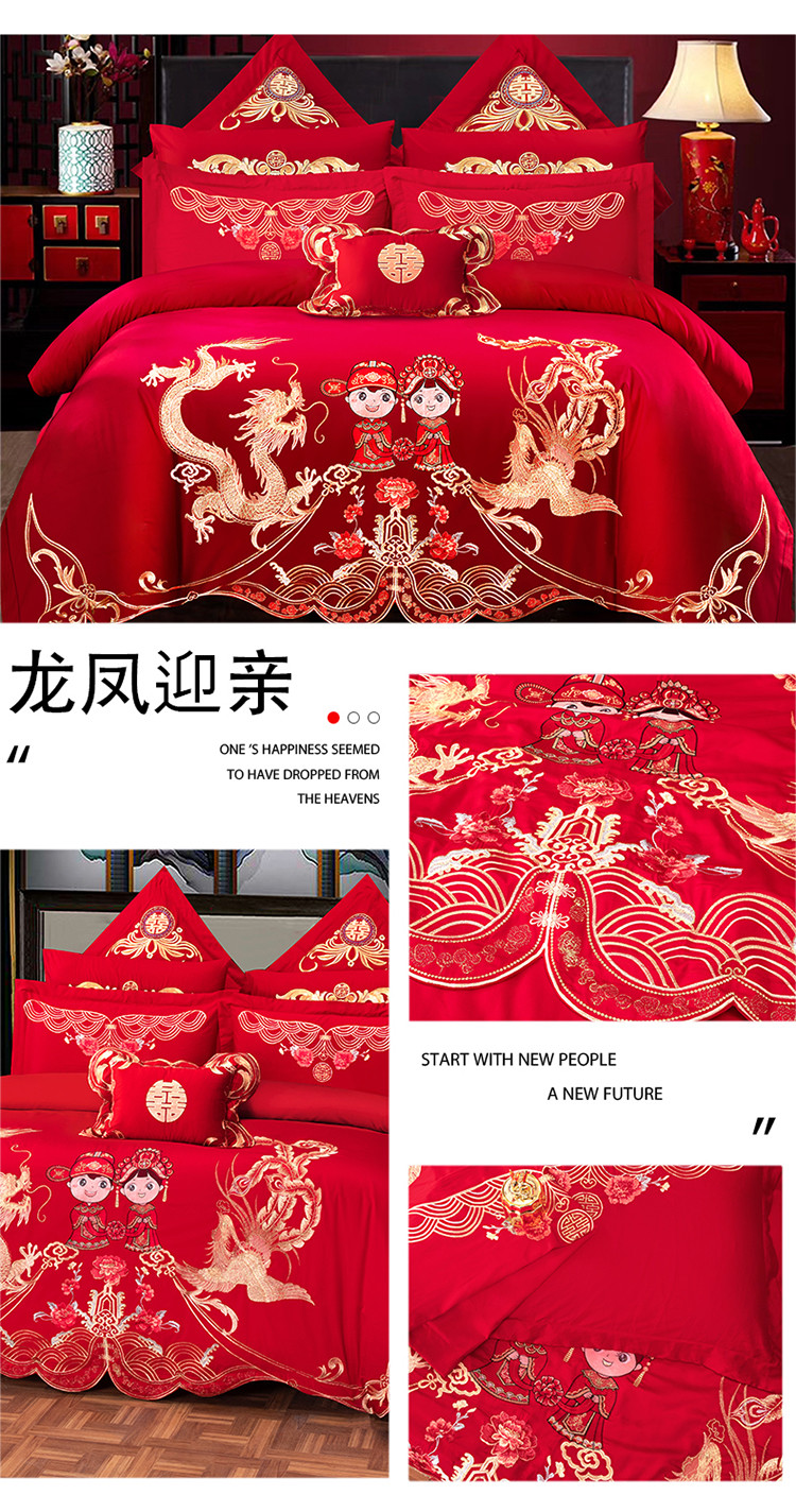 (总)慕她婚庆2025年新款婚庆四件套大红色刺绣结婚床上用品,恩爱龙凤,龙凤欢腾,秦晋龙凤,喜韵龙凤,幸福龙凤,幸福永驻,雅韵龙凤,国色牡丹,吉祥如意,龙凤喝彩