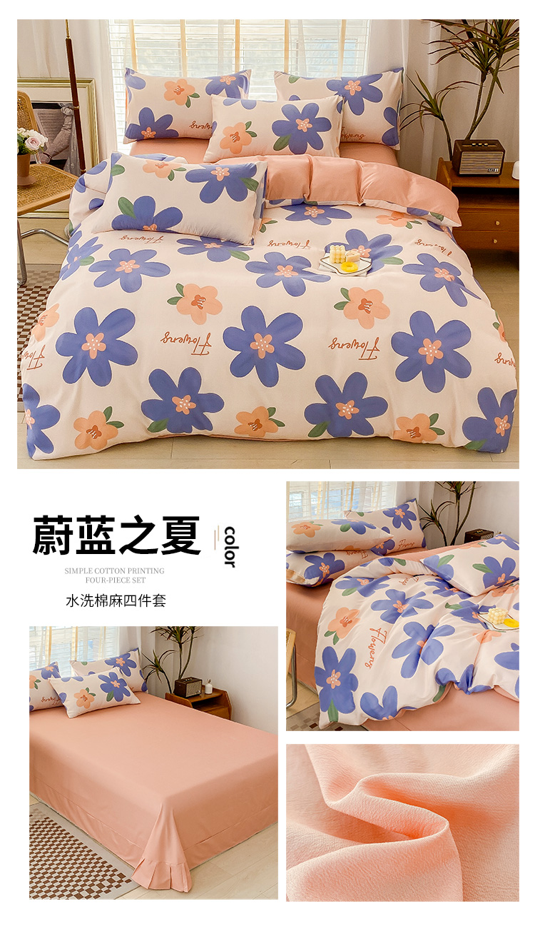 商品名称:优尚 2025新款双层纱水洗棉麻四件套 蔚蓝之夏