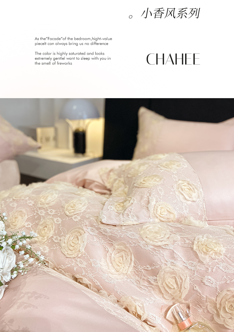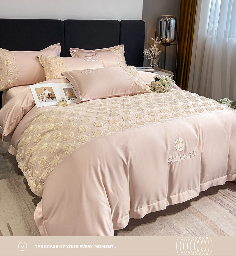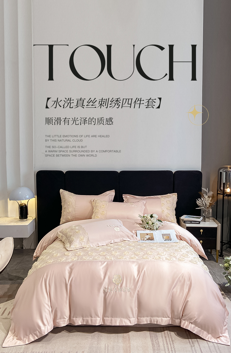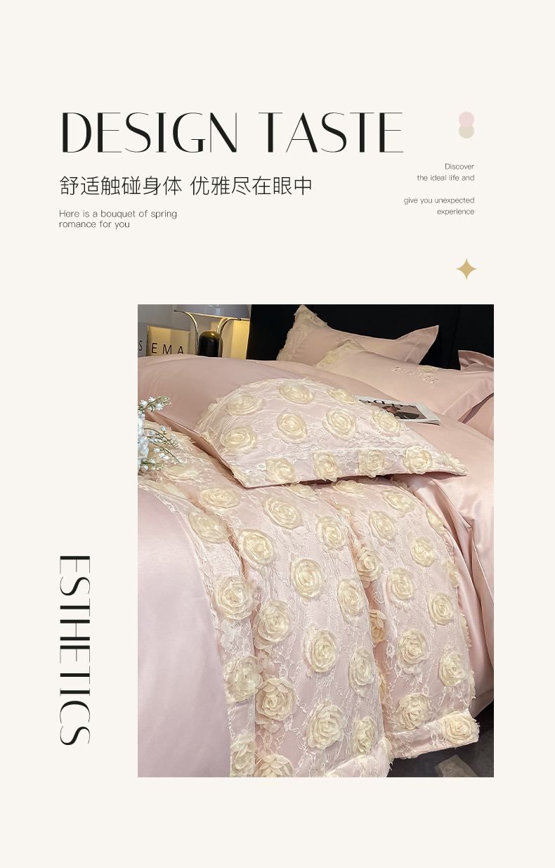 商品名称:理想家家纺 2023新款 山茶物语 双面冰丝四件套 粉