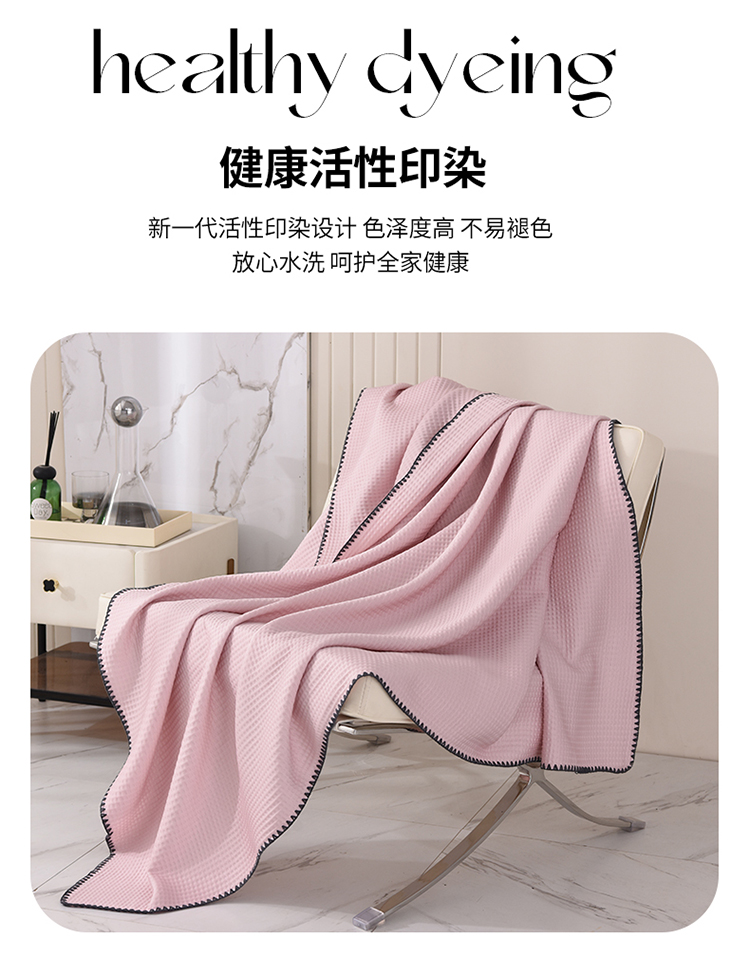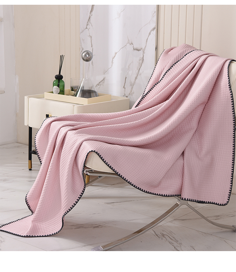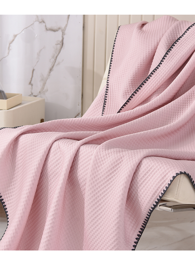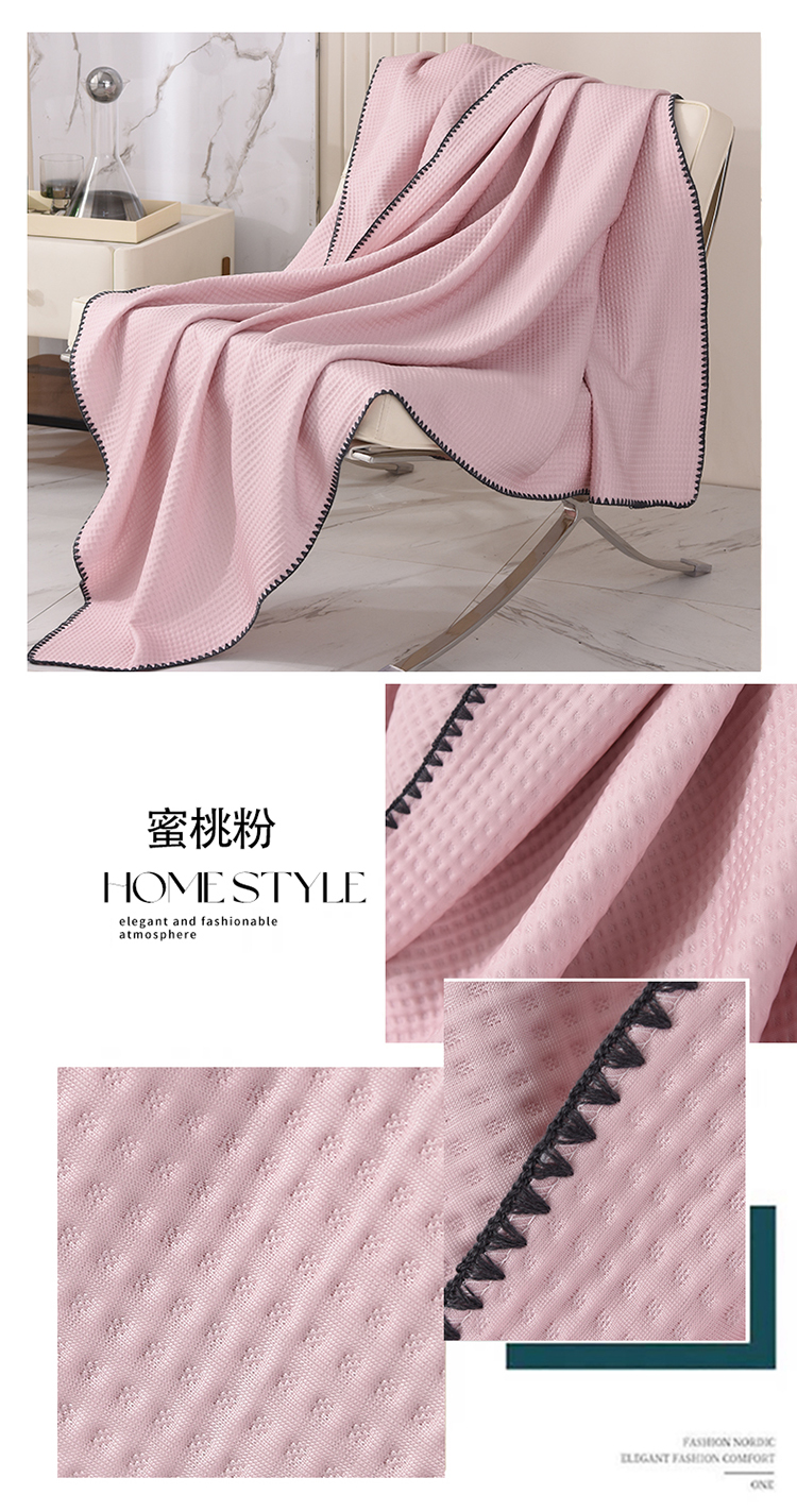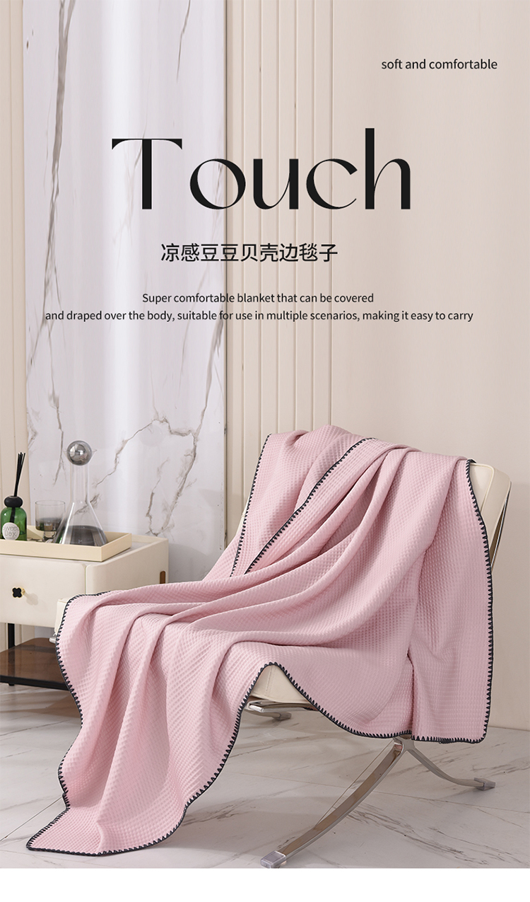 妖妖家纺 2023新款贝壳绣凉感豆豆盖毯 蜜桃粉