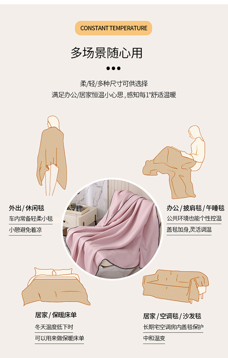 商品名称:妖妖家纺 2023新款贝壳绣凉感豆豆盖毯 蜜桃粉