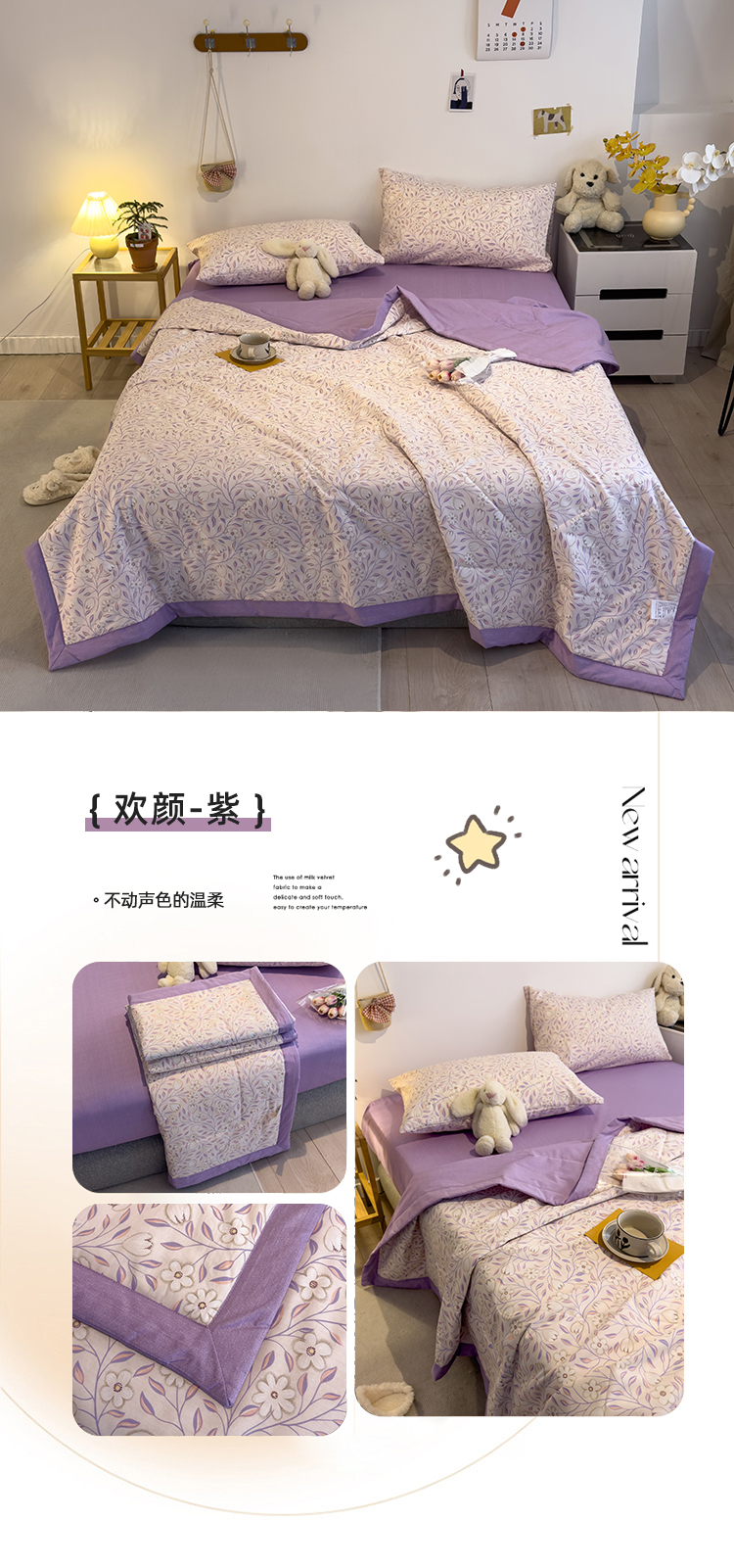 商品名称:怡家居 2023新款全棉小清新手包边夏被四件套 欢颜-紫