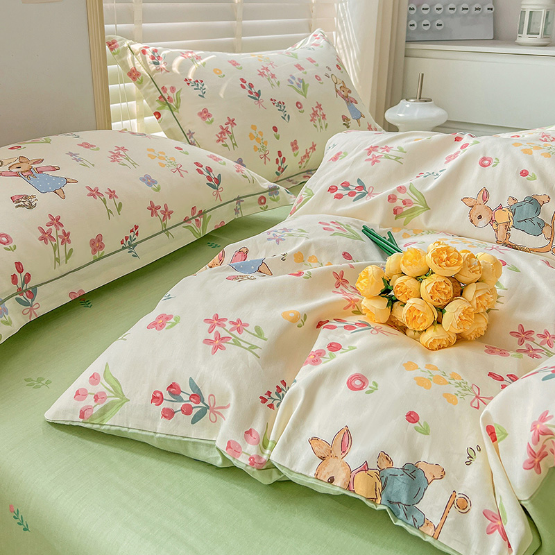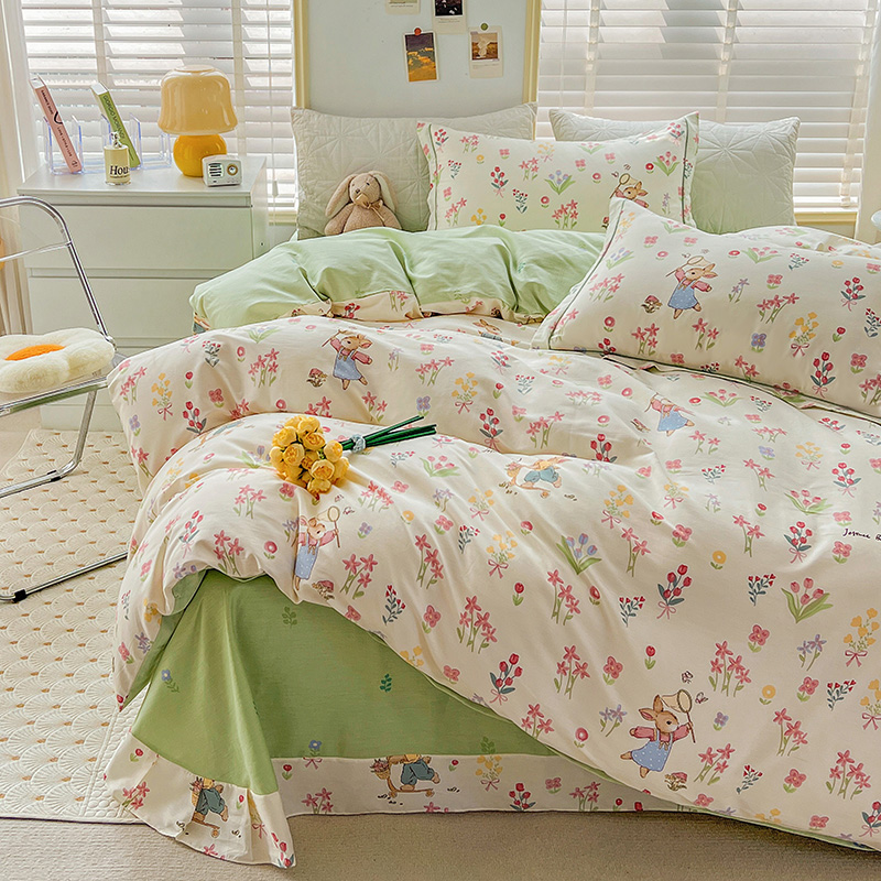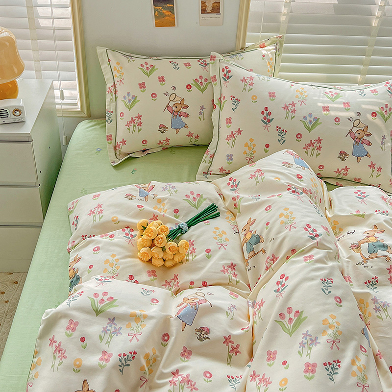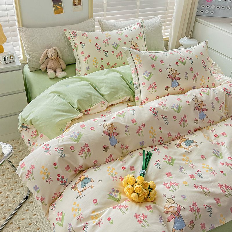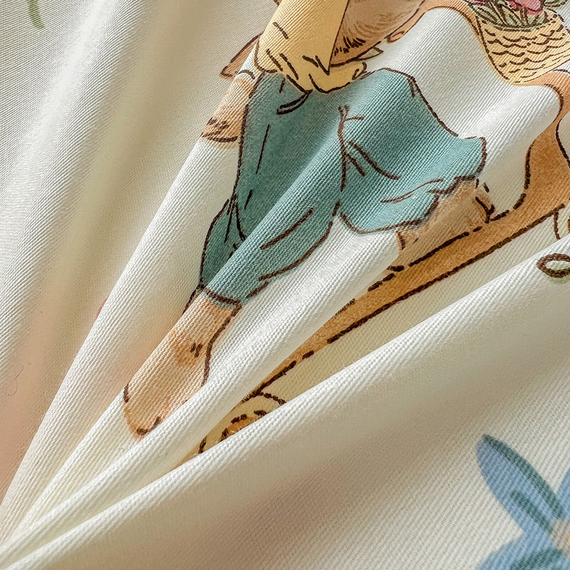 商品名称:乐童 2024网红直播爆款吊边+一字绣工艺款四件套(七) 悠哉小兔