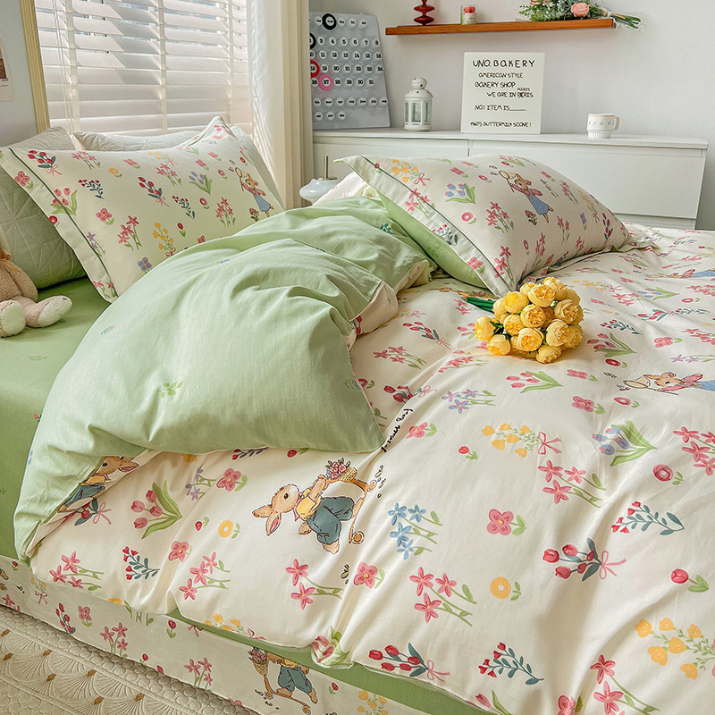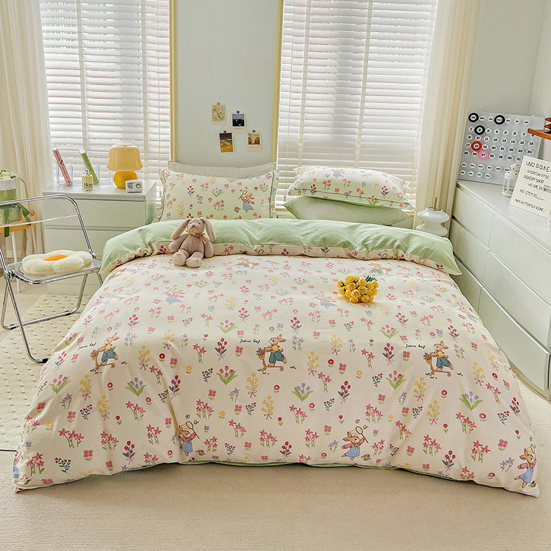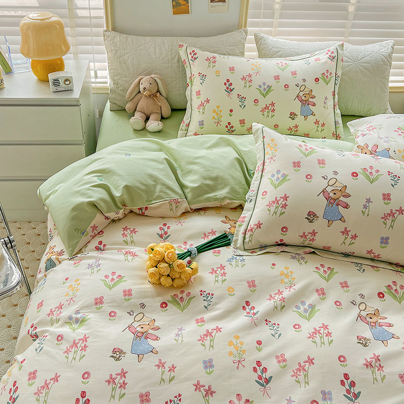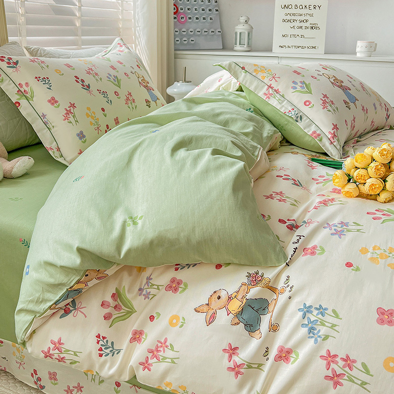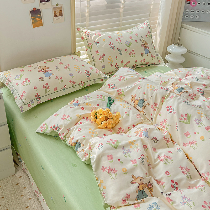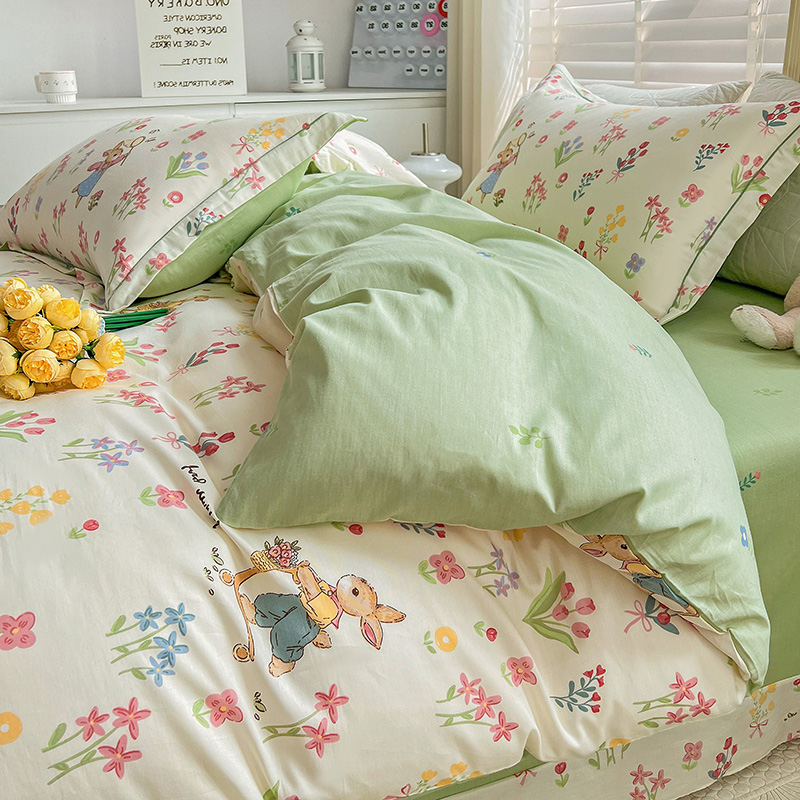 商品名称:乐童 2024网红直播爆款吊边+一字绣工艺款四件套(七) 悠哉小兔