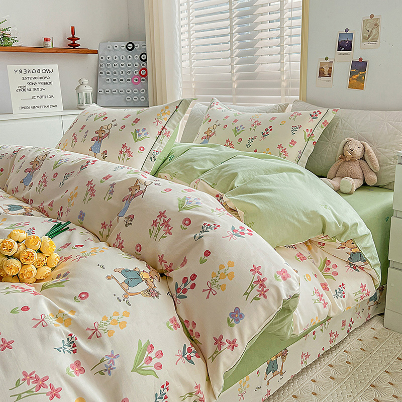(总)乐童家纺 2026新款全棉纯棉拼接花边小清新工艺款四件套,彩虹木马,春日小兔,花田兔兔,凯莉梦境,口袋故事,浪花轻歌,毛线彩虹,梦境手账,千禧少女咖,少女日记,心跳瞬间