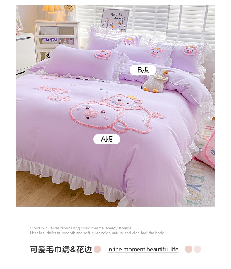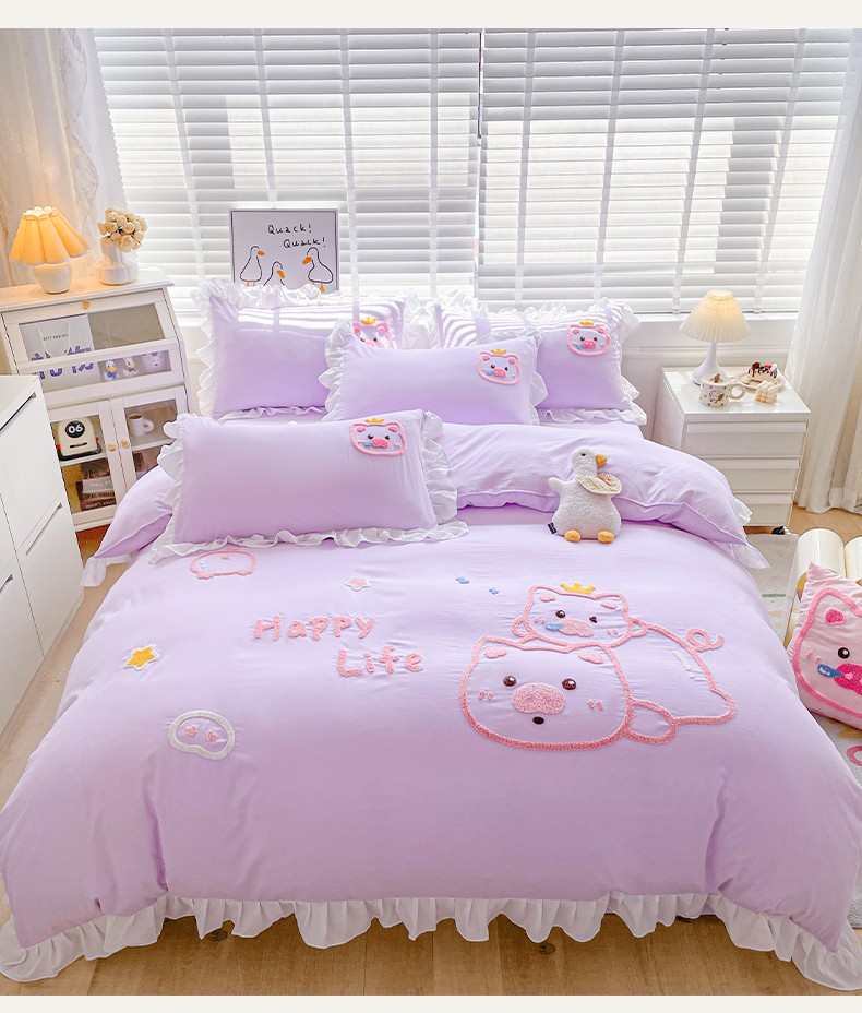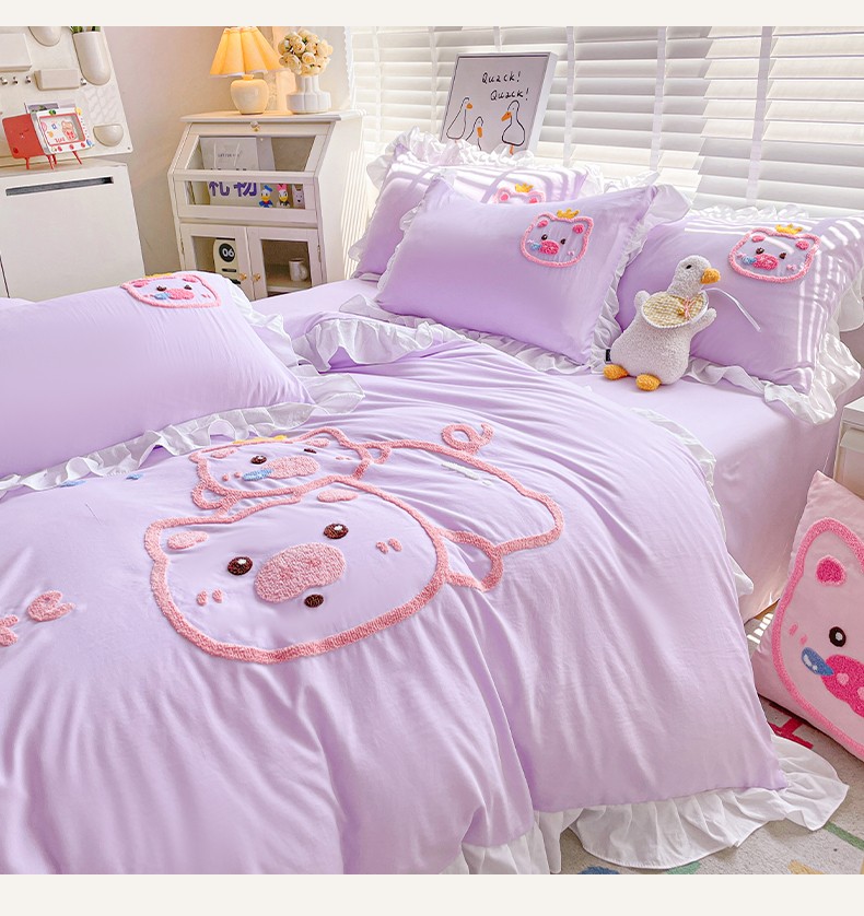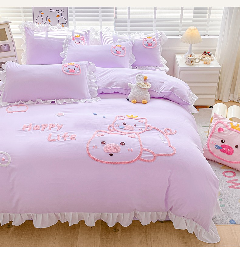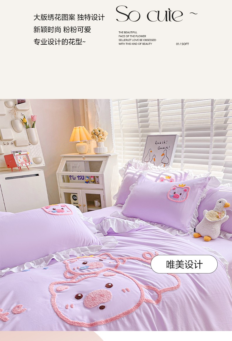 当前位置: 91家纺网 > 商品网购 > 床品套件 > 四件套 > 水洗棉四件套 > 泉欣2024新款水洗亲肤棉大版绣花四件套(专版花型)猪猪系列 萌小猪-香芋紫