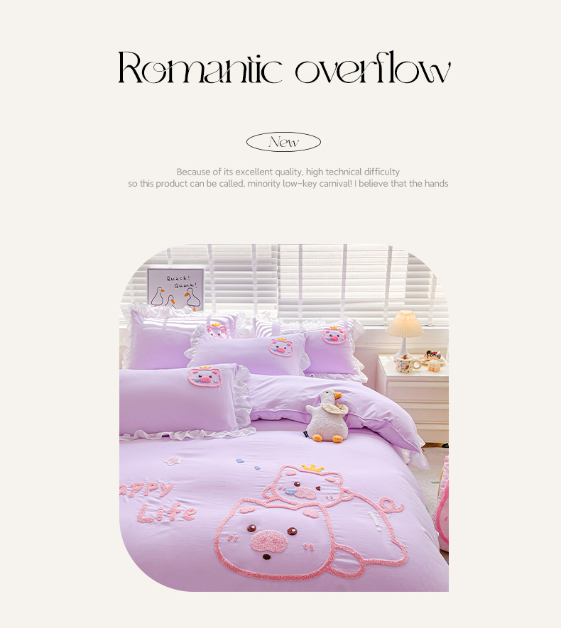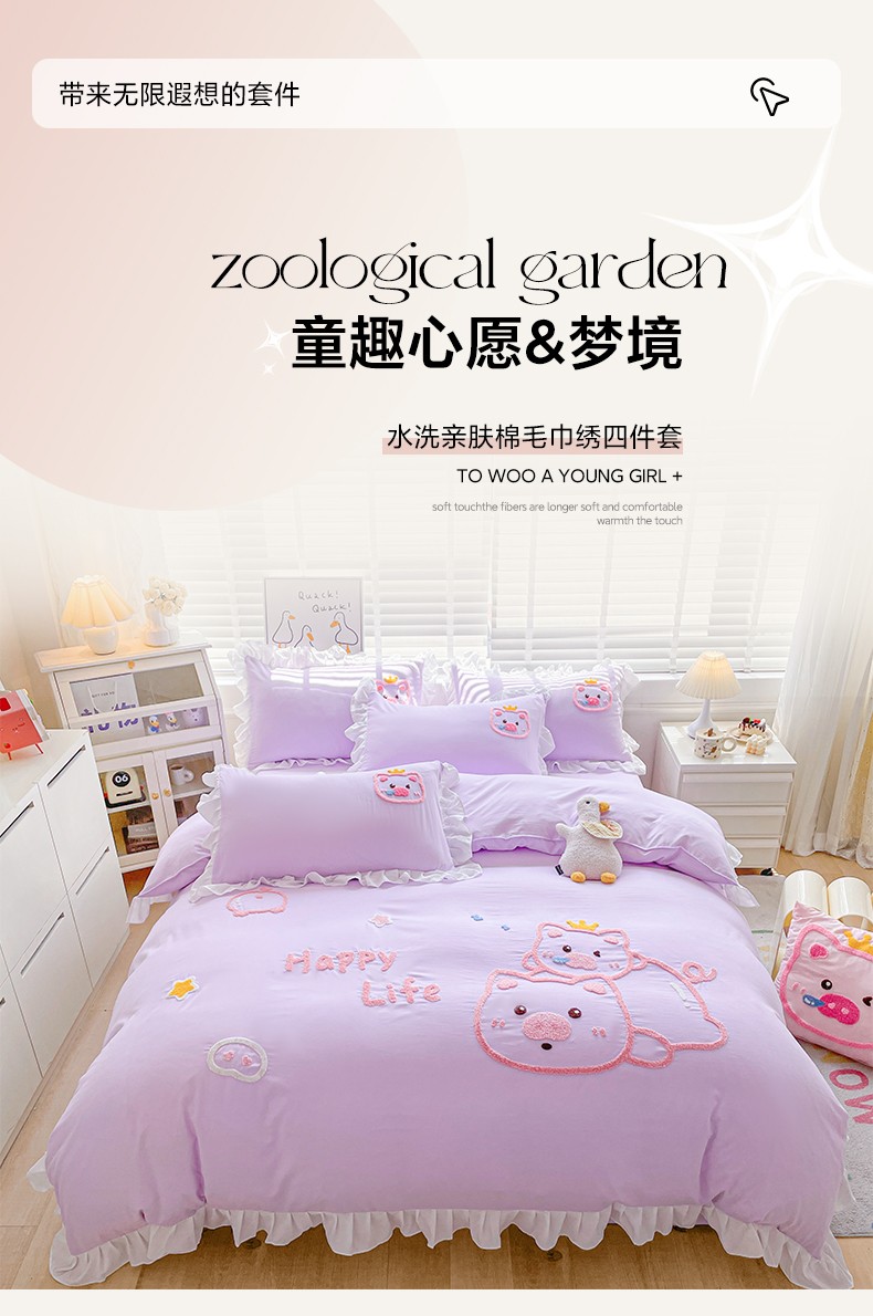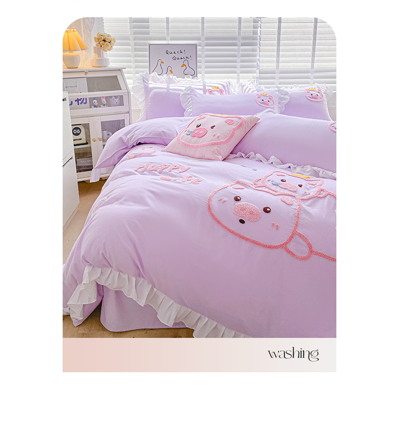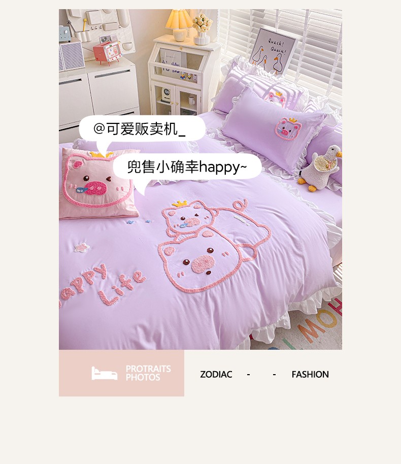 当前位置: 91家纺网 > 商品网购 > 床品套件 > 四件套 > 水洗棉四件套 > 泉欣2024新款水洗亲肤棉大版绣花四件套(专版花型)猪猪系列 萌小猪-香芋紫