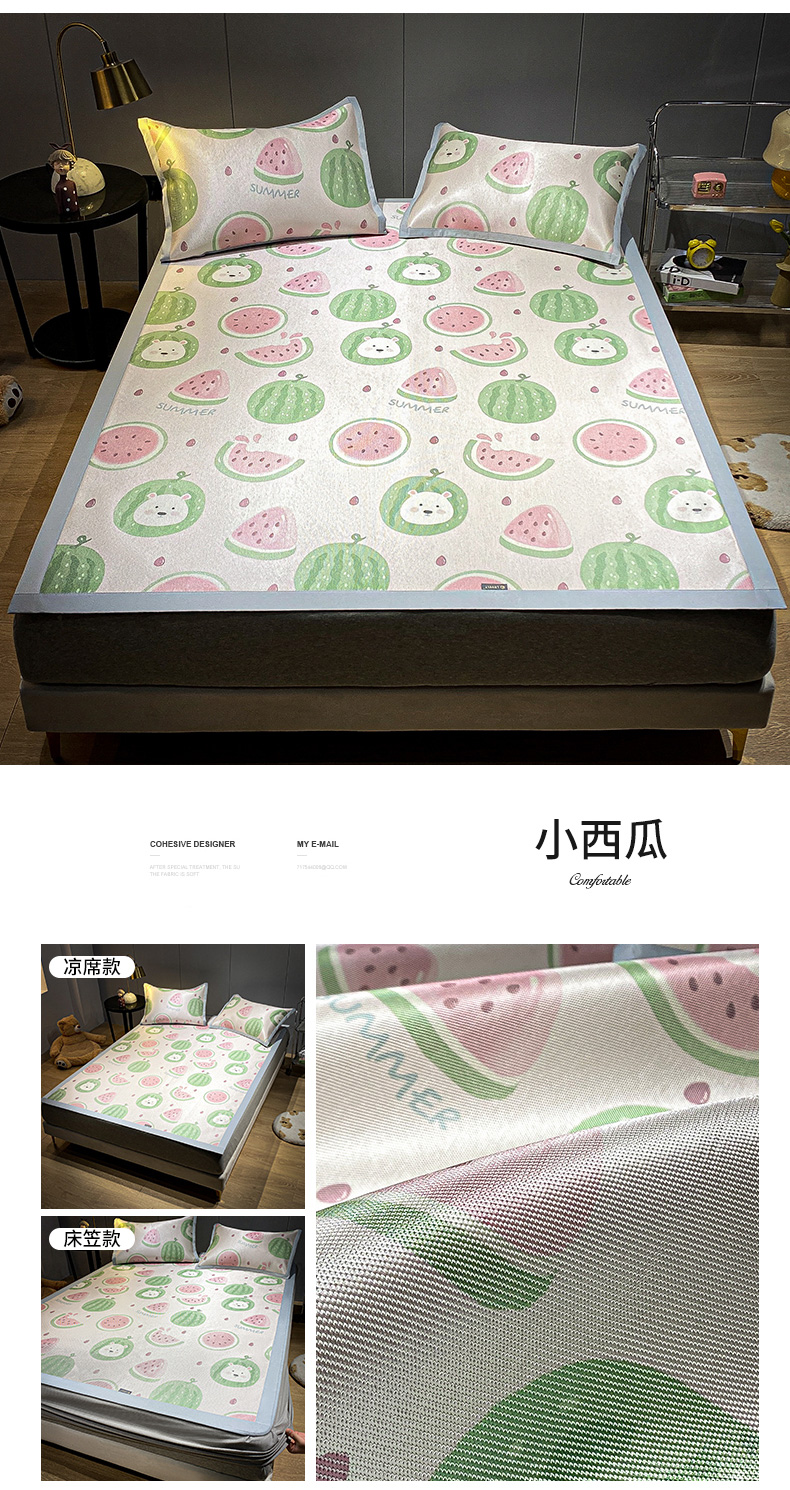 商品名称:安哆啦 A类数码印花冰丝藤席三件套 小西瓜