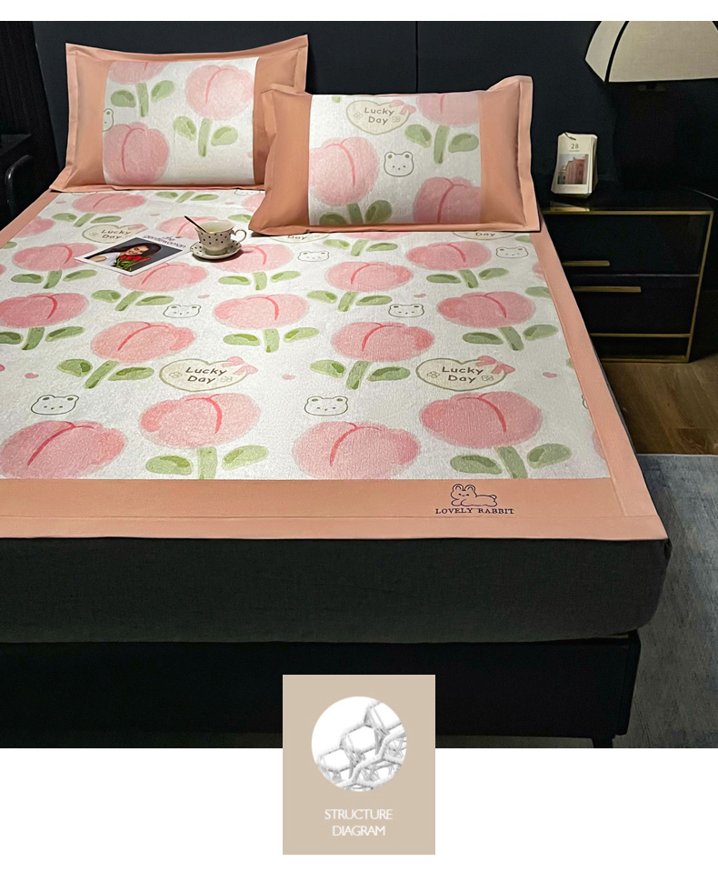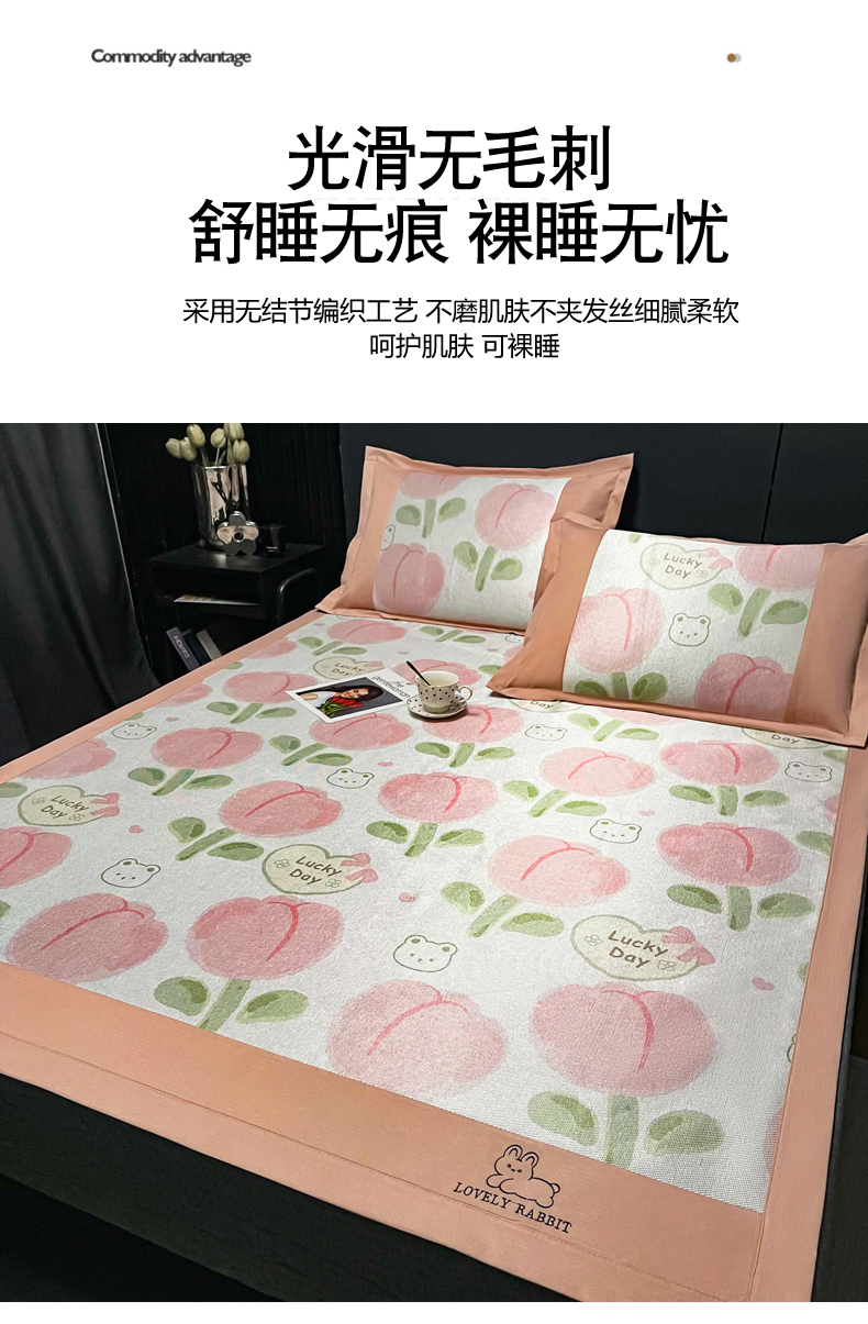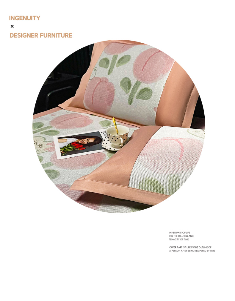 慕尚家纺 2025新款简约数码印花冰藤席平铺+床笠款 花骨朵-床笠