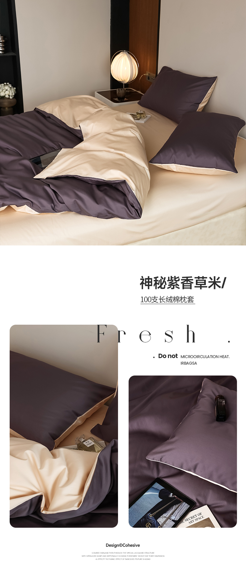 商品名称:寐眠 2023新款100支纯棉套件单枕套 神秘紫香草米