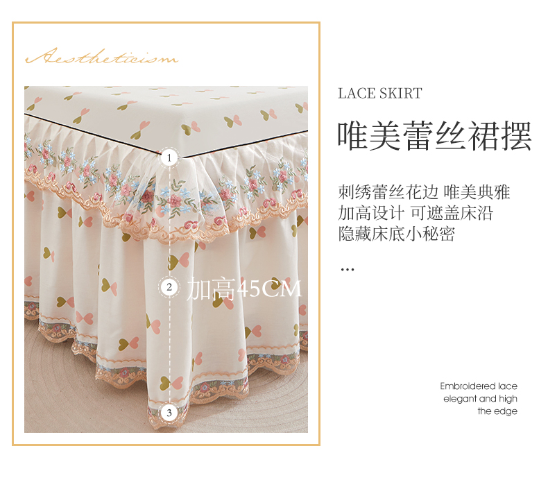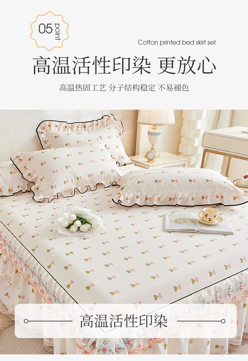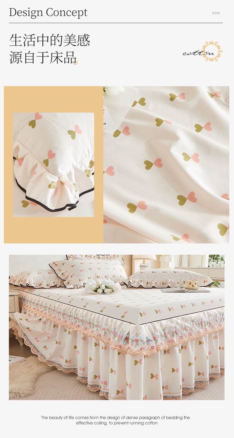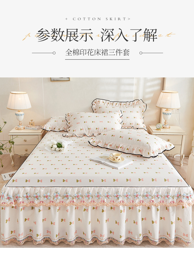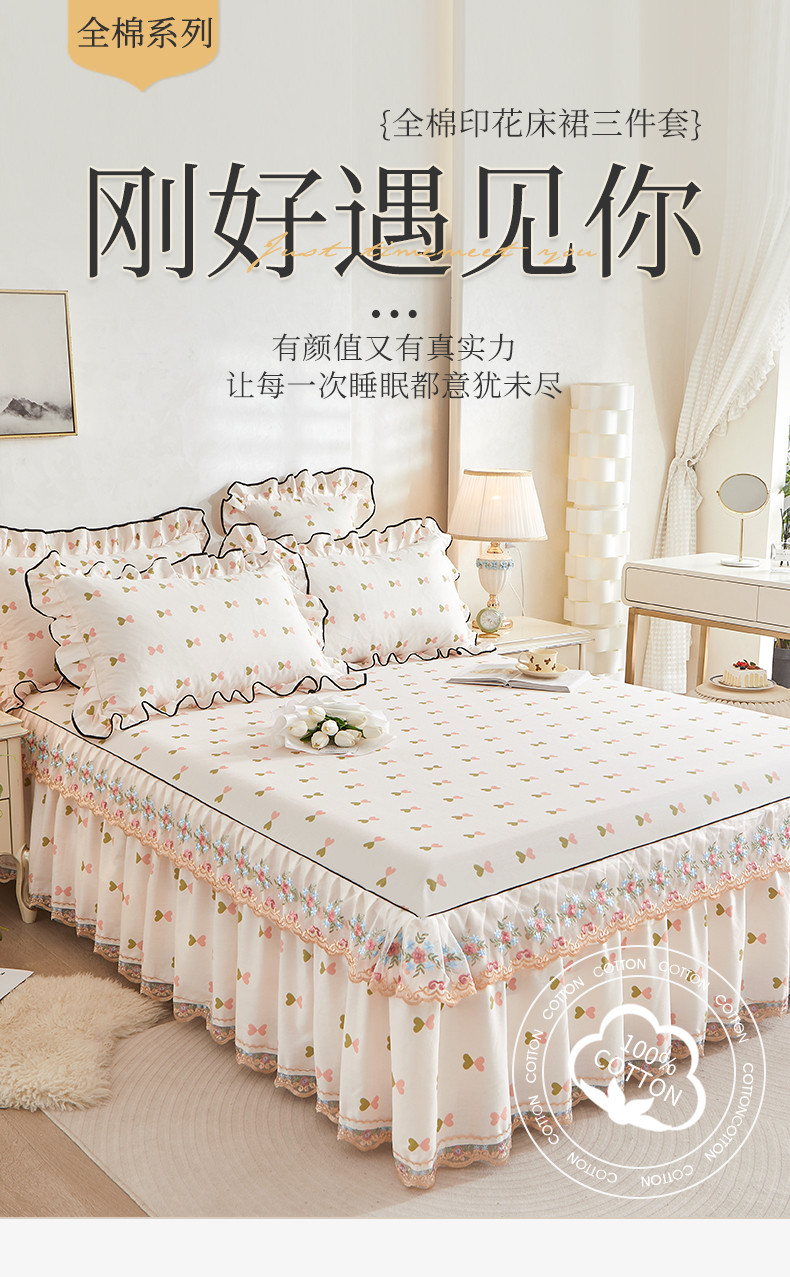 当前位置: 91家纺网 > 商品网购 > 床品套件 > 三件套 > 宜凡 2023新款 全棉韩版床裙三件套 吻别