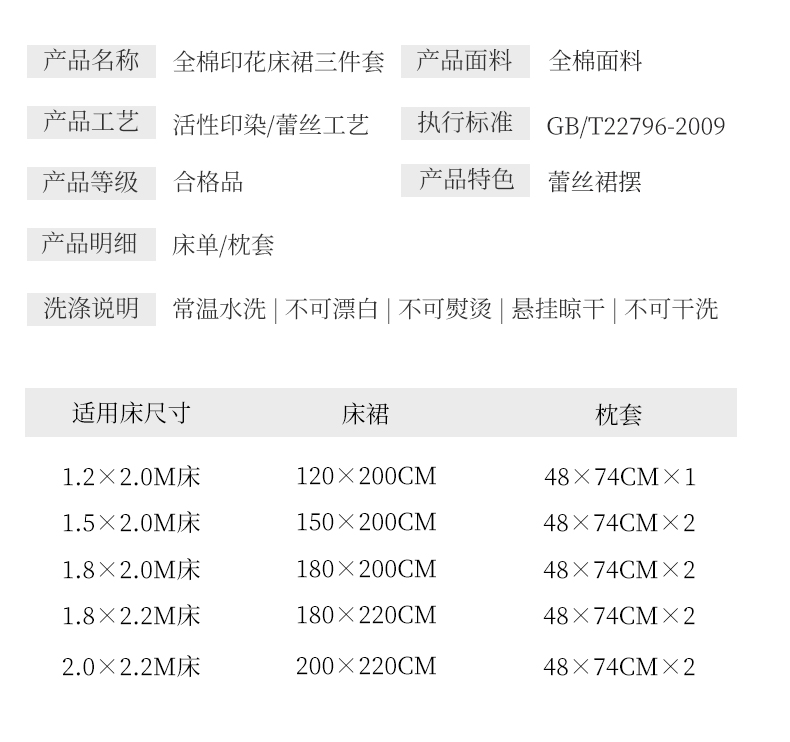 床裙150*200 枕套48*74*2 | ¥115.00 |